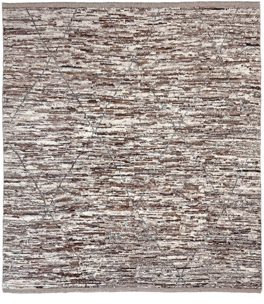 Ivory & Brown Tulu Turkish Rug • Contemporary Handmade Textured Wool Rug (8'10"x9'11")