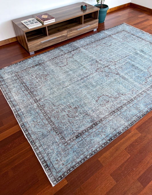 Muted Blue Oushak • Transitional Handmade Turkish Rug (7'x10'10")
