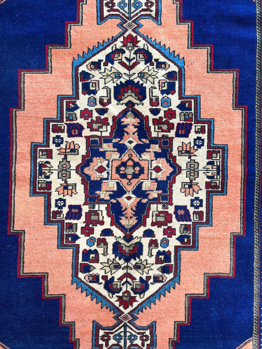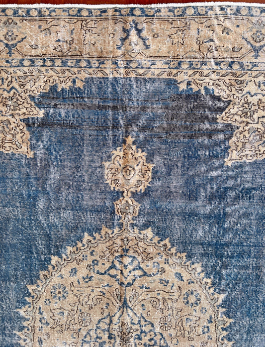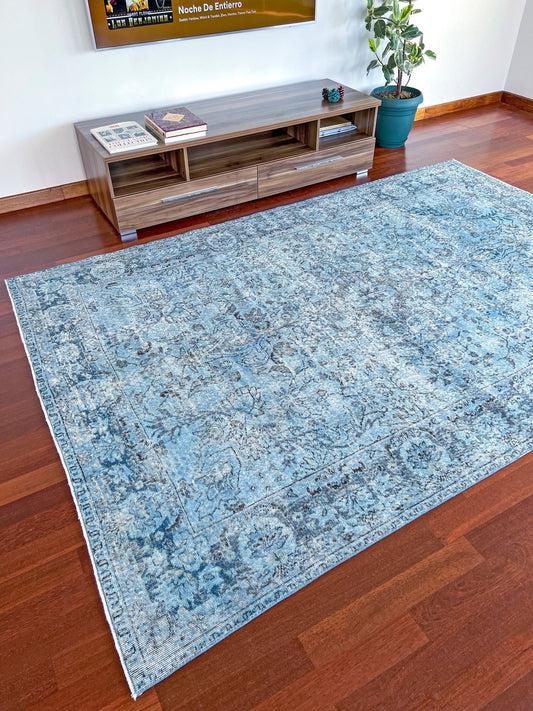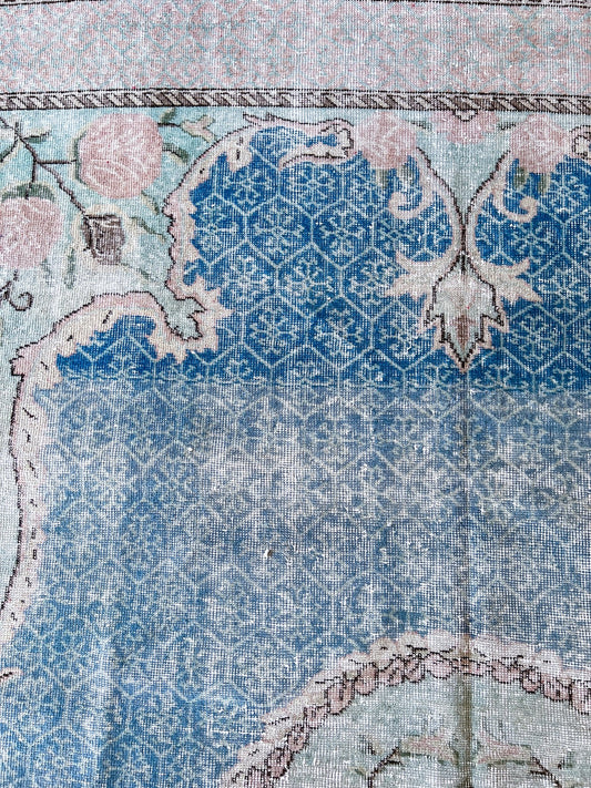 Floral Blue • Transitional Vintage Turkish Rug (6'10"x10'3")