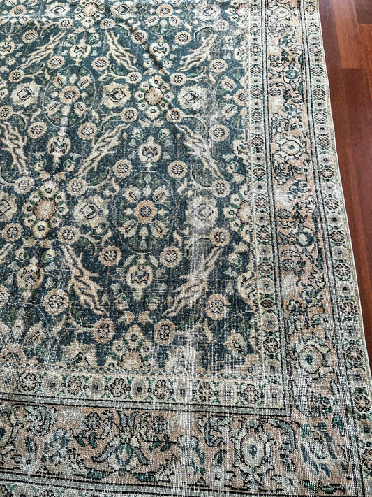 Turquoise Oushak • Transitional Vintage Turkish Rug (6'11"x10'7")
