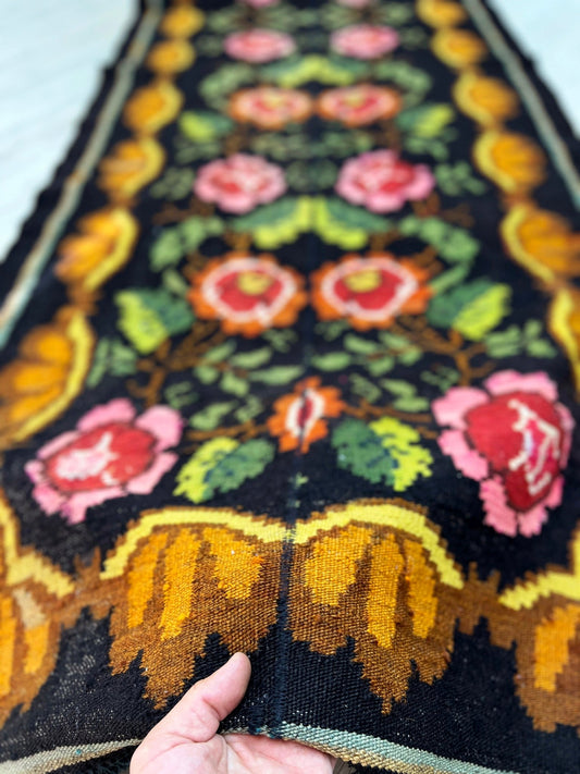 Moldovan Rose Kilim • Vintage Runner Rug (3'8"x8'9")