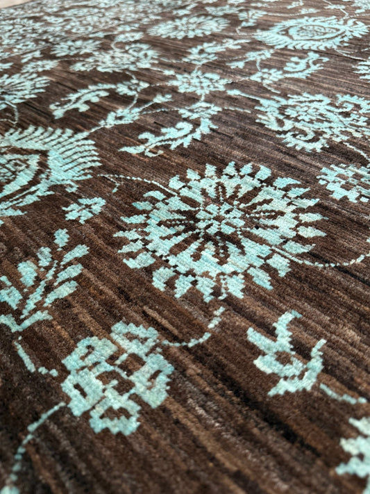 Brown Turquoise Oushak • Handmade Turkish Rug (8'3"x9'11")