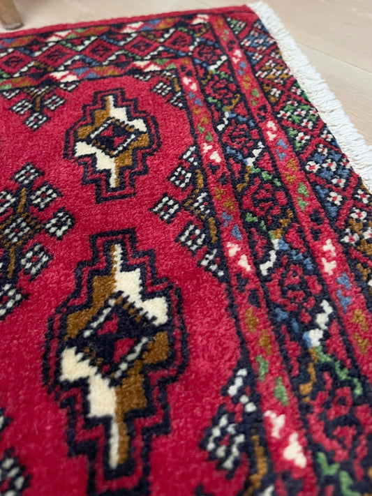 Crimson Red Bukhara • Handmade Turkmen Scatter Rug (2'8"4'6")