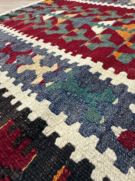 Kayseri Kilim • Vintage Turkish Flatweave Mini Rug (3'2"x3'9")