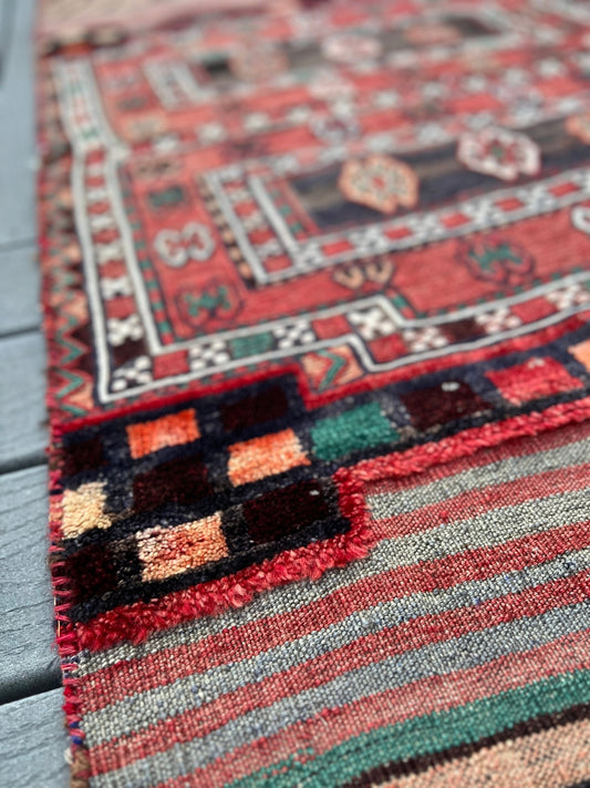 Bakhtiari / Luri Saddle Bag • Vintage Oriental Runner Rug (3'2"x7'1")