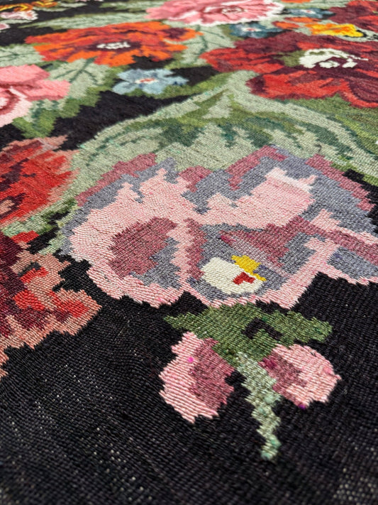 Moldovan Rose Kilim • Vintage European Flatweave Rug (7'8"x12'7")