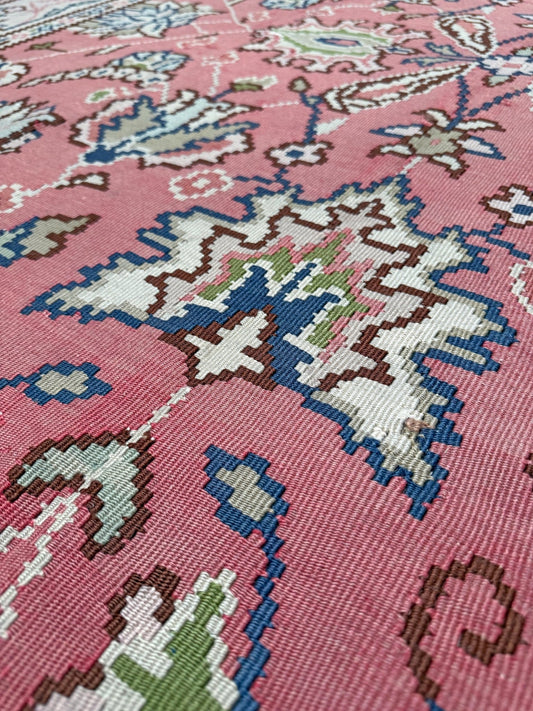 Rose Pink Floral Kilim • Vintage European Flatweave Rug (6'5"x9'5")
