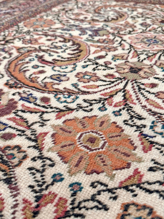 Ivory Scrolling Vines • Handmade Vintage Turkish Rug (4'7"x7'4")