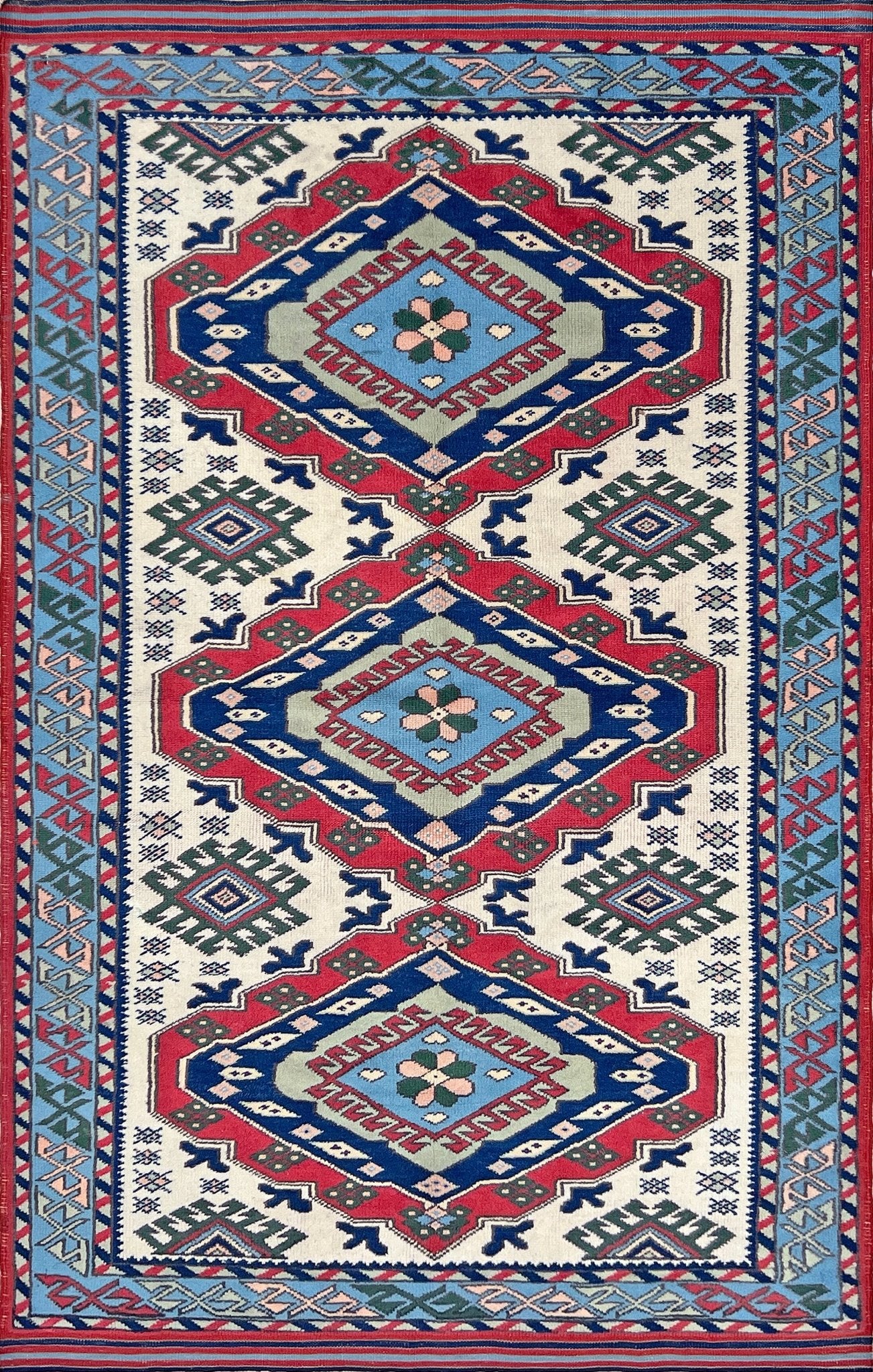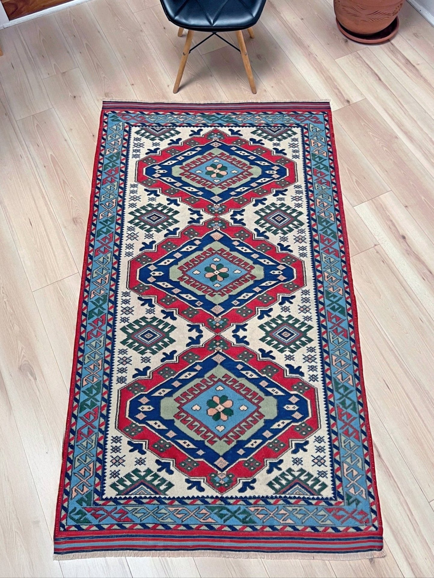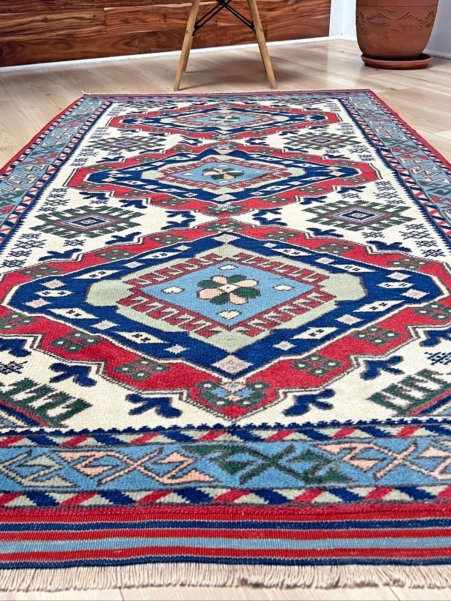 Baby Blue Tribal • Handmade Turkish Rug (3'10"x6'1")