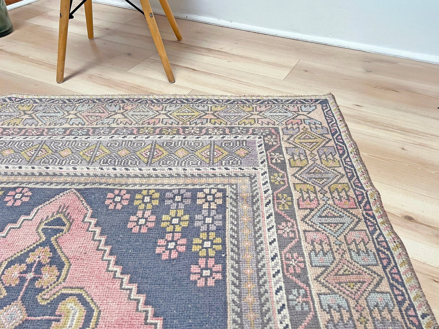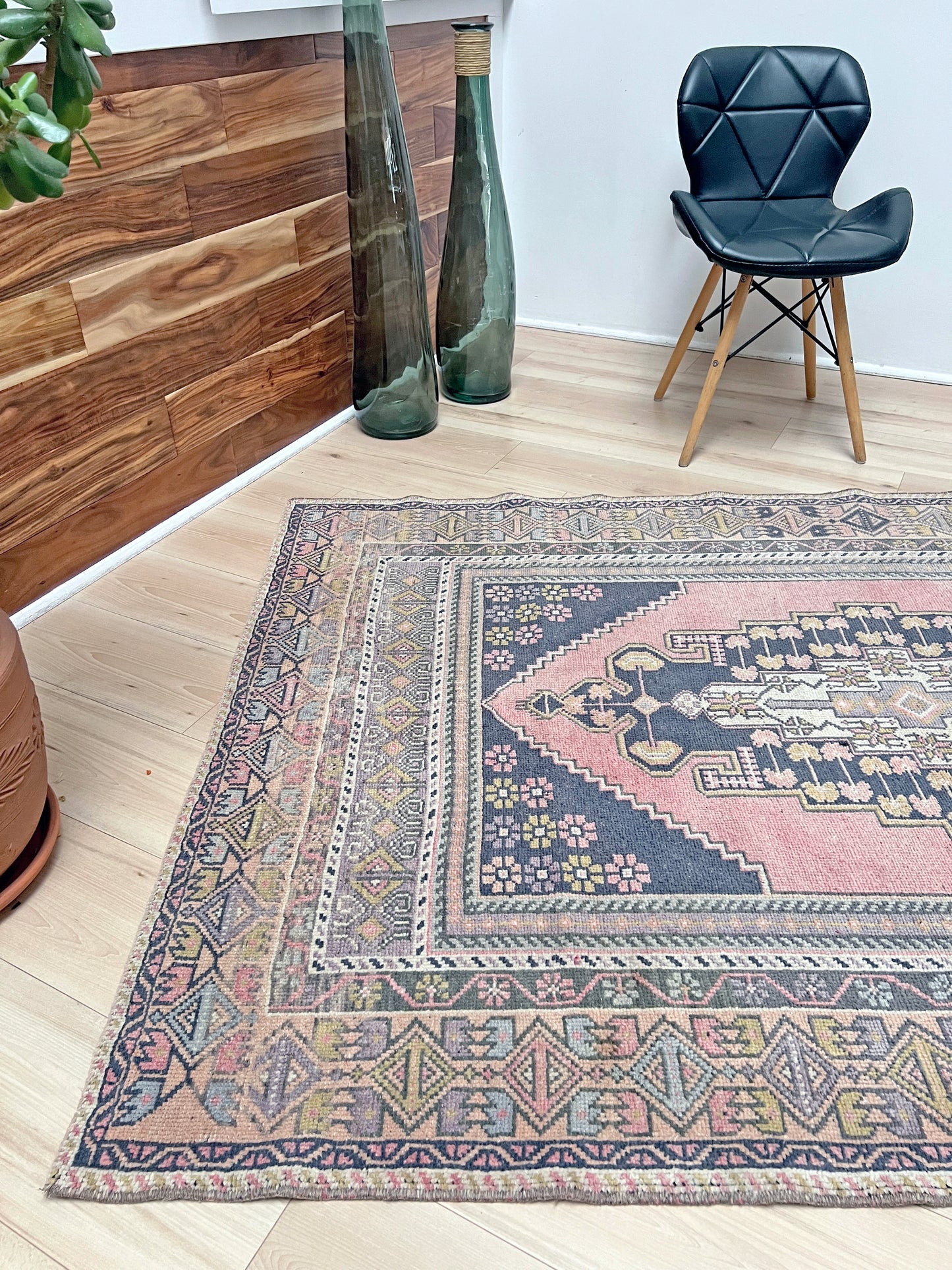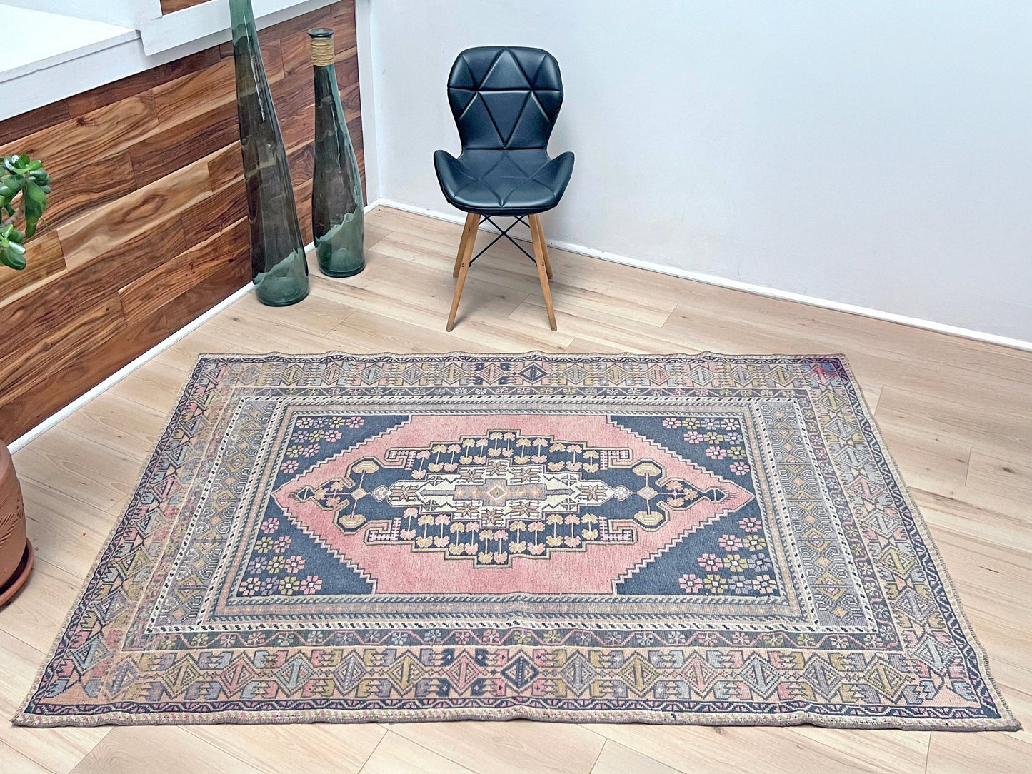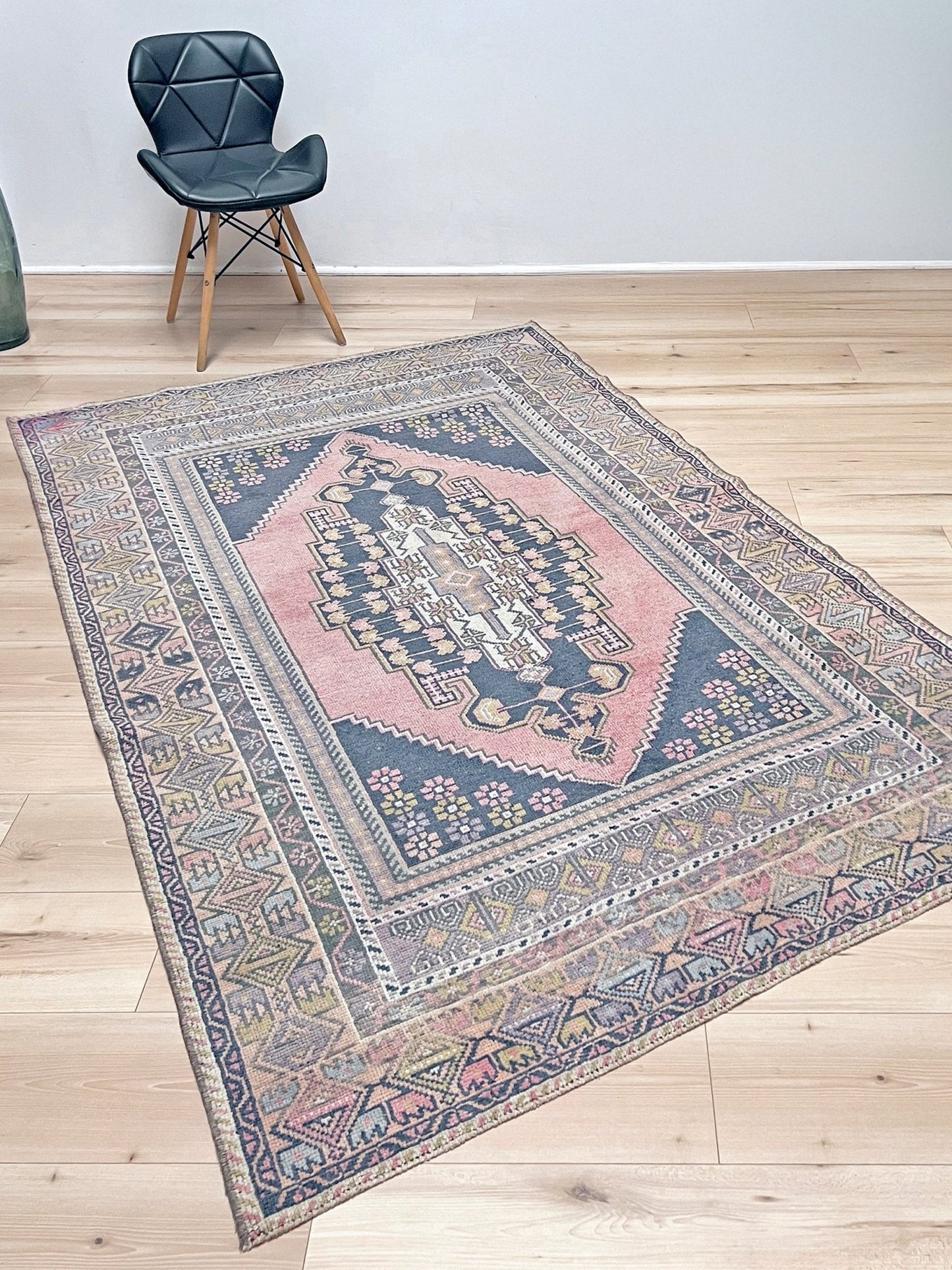 Vintage Turkish Rug • Handmade Wool Carpet • 5x7 Scatter Rug for Living Room, Bedroom, Dining, Kitchen, Nursery, Study