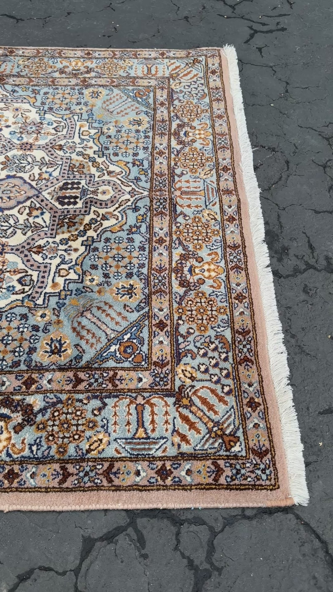 Tebriz Persian Rug • Handmade Wool Carpet • 3x5 Blue Ivory Scatter Rug for Living Room, Bedroom, Kitchen Nursery & Office