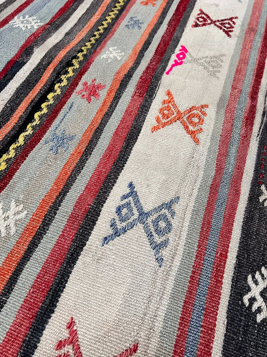 Vibrant Striped Denizli Kilim • Vintage Turkish Flatweave Rug (4'1"x6'5")
