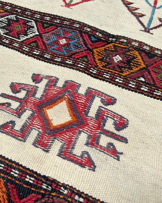 Embroidered Turkish Kilim • Vintage Flatweave Rug (4'6"x6'1")