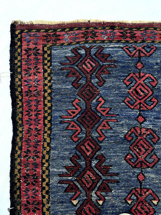 Blue Senneh • Vintage Persian Kilim Rug (3'11"x4'8")