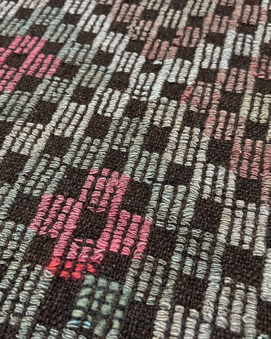 Charcoal Brown Vintage Turkish Kilim • Embroidered Flatweave Rug (3'7"x4'11")