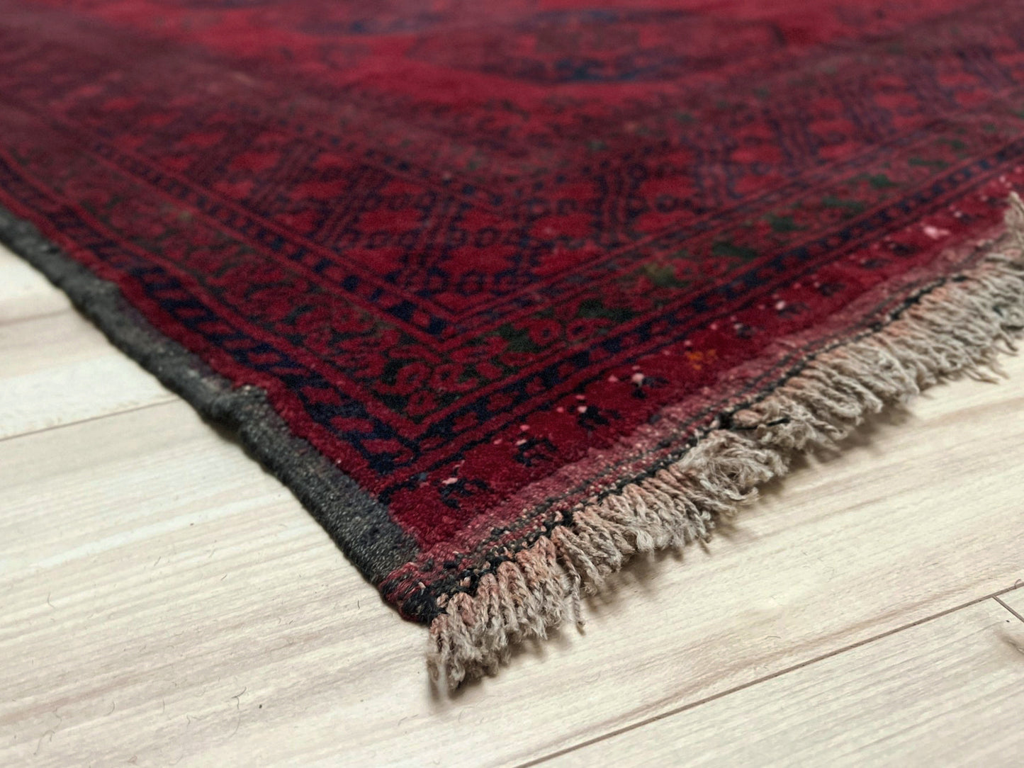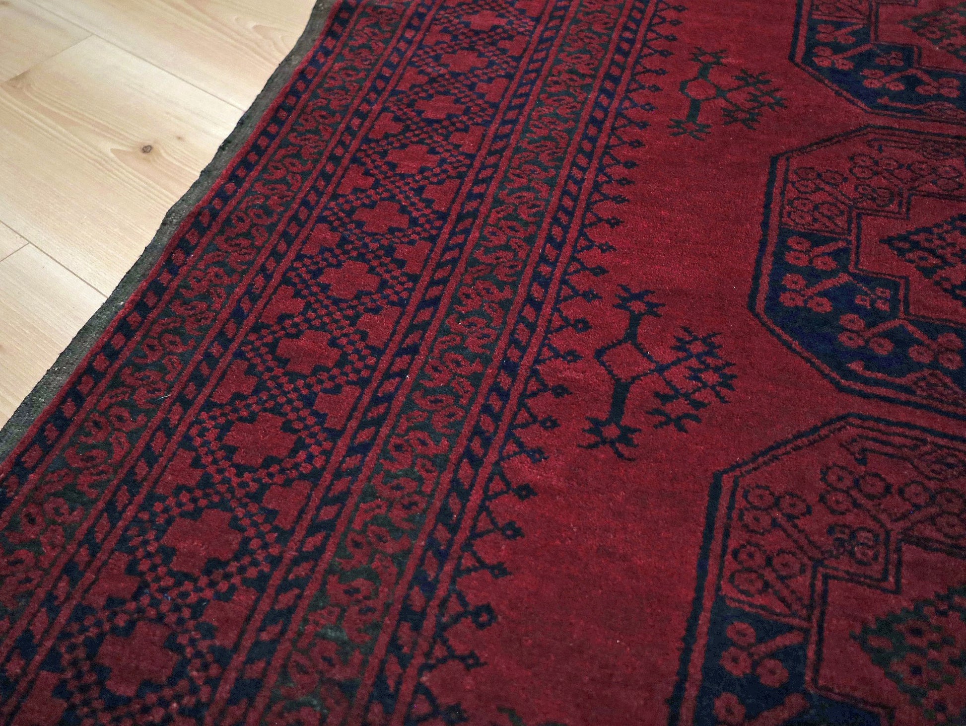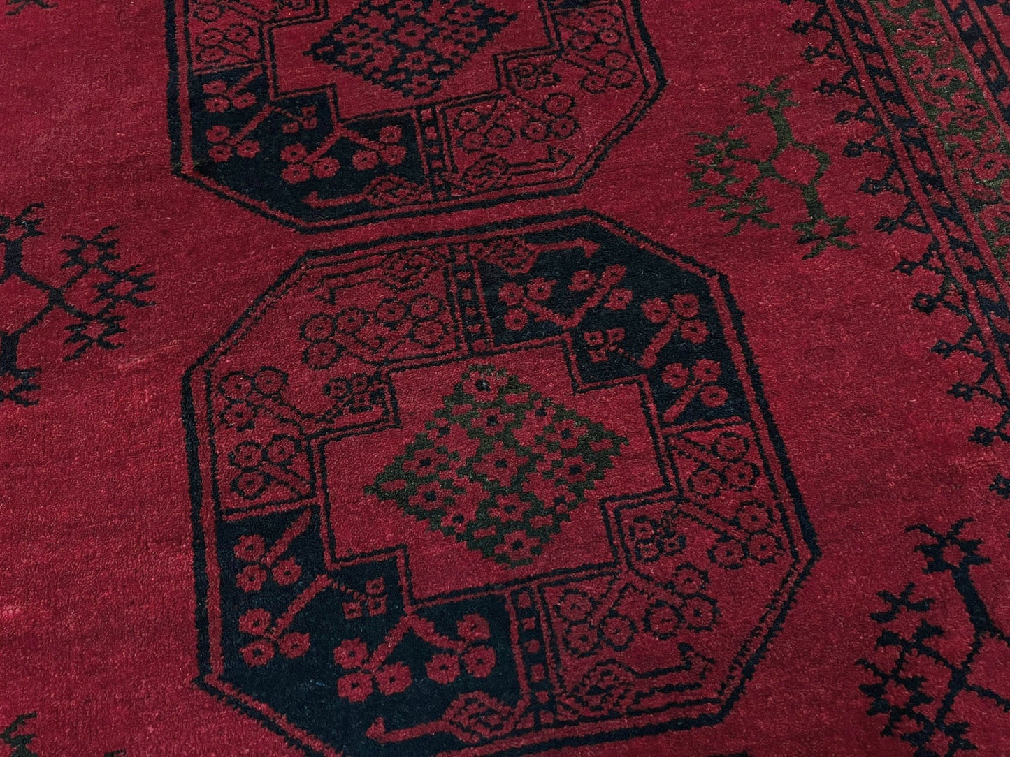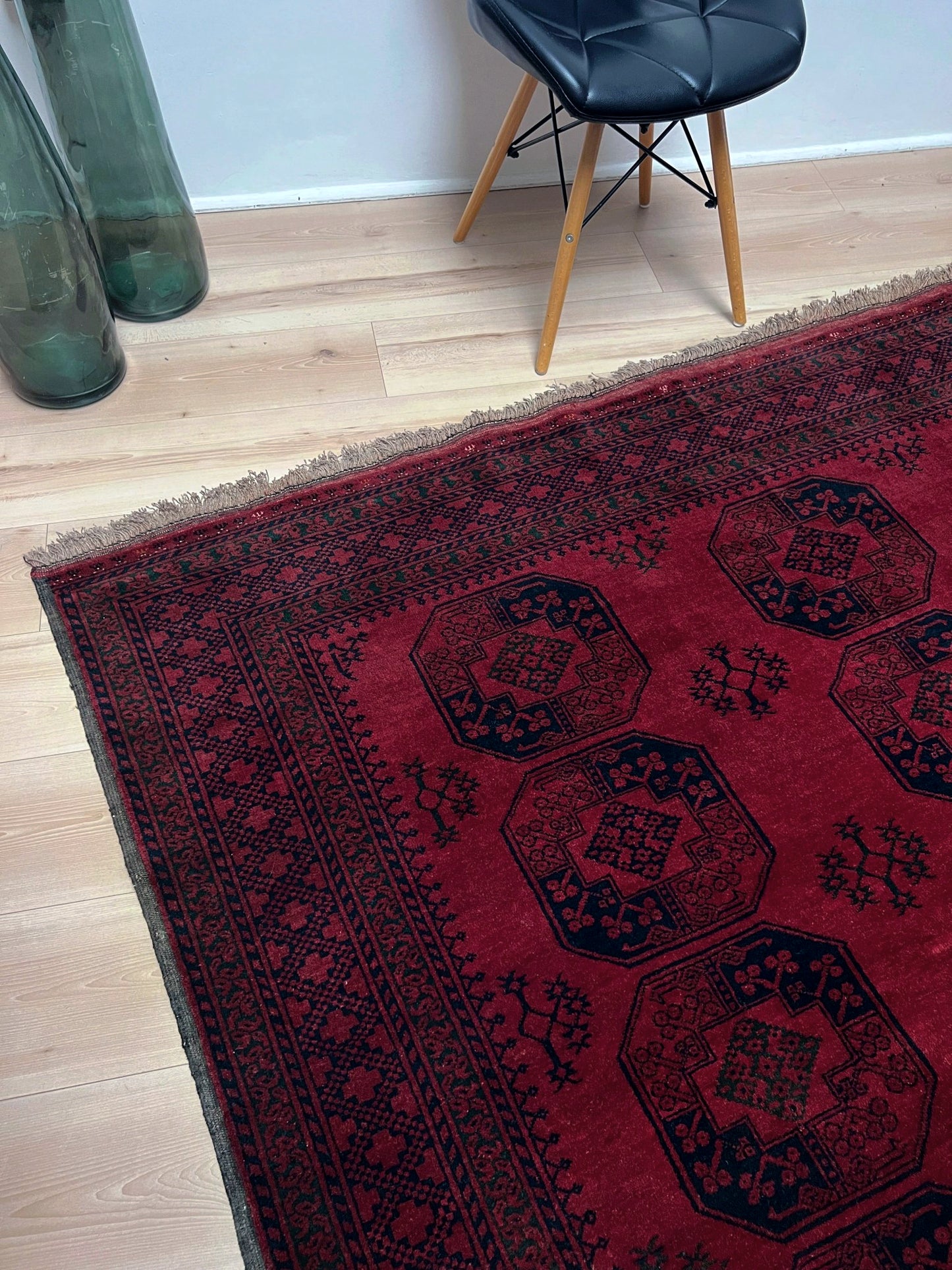 Burgundy Red Oriental Rug • Elephant Foot Turkmen Ersari Rug • 6x9 Handmade Wool Area Rug for Living Room, Bedroom, Dining, Kitchen, Study & Office