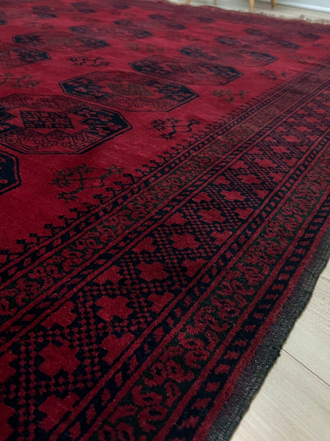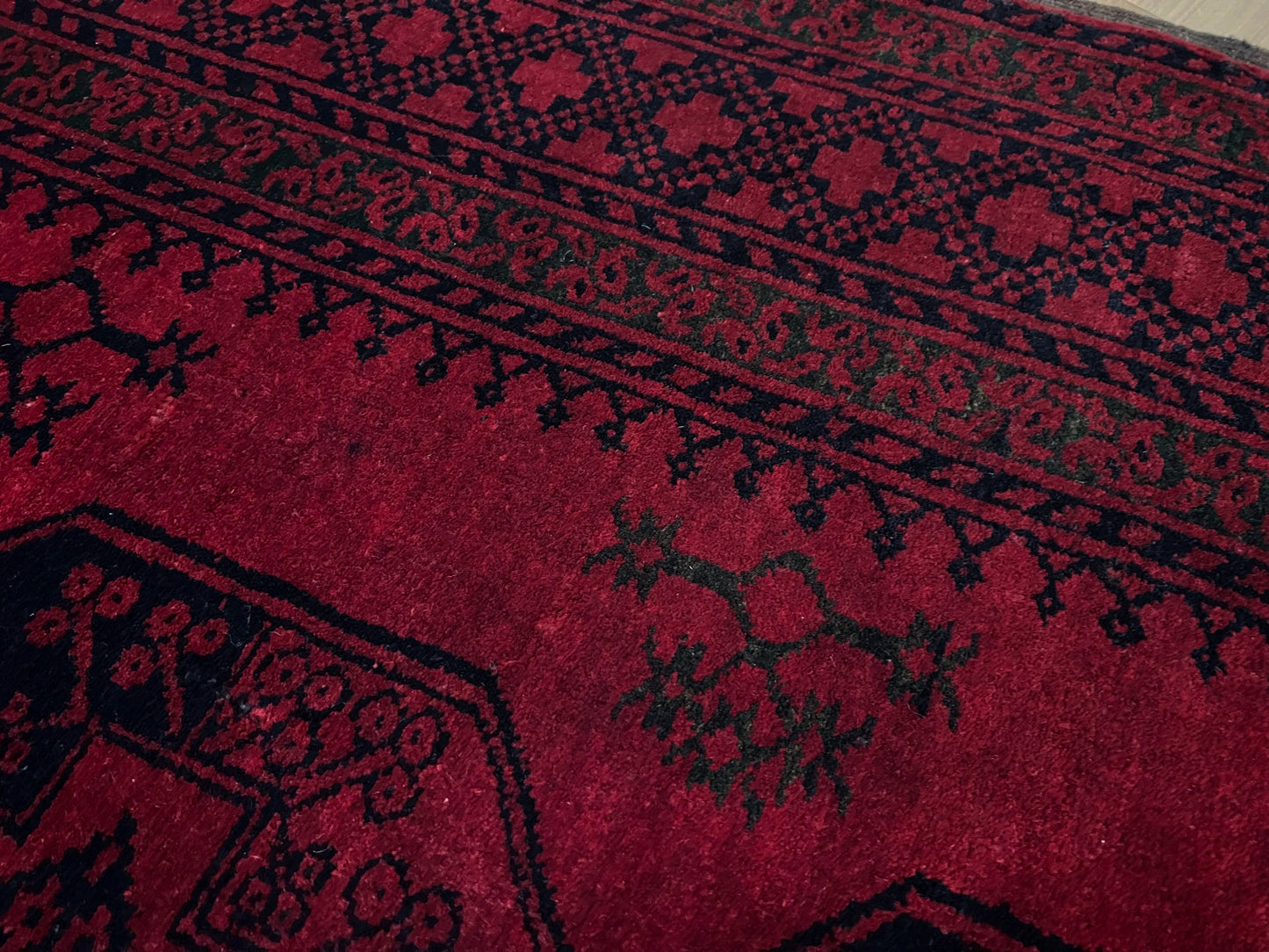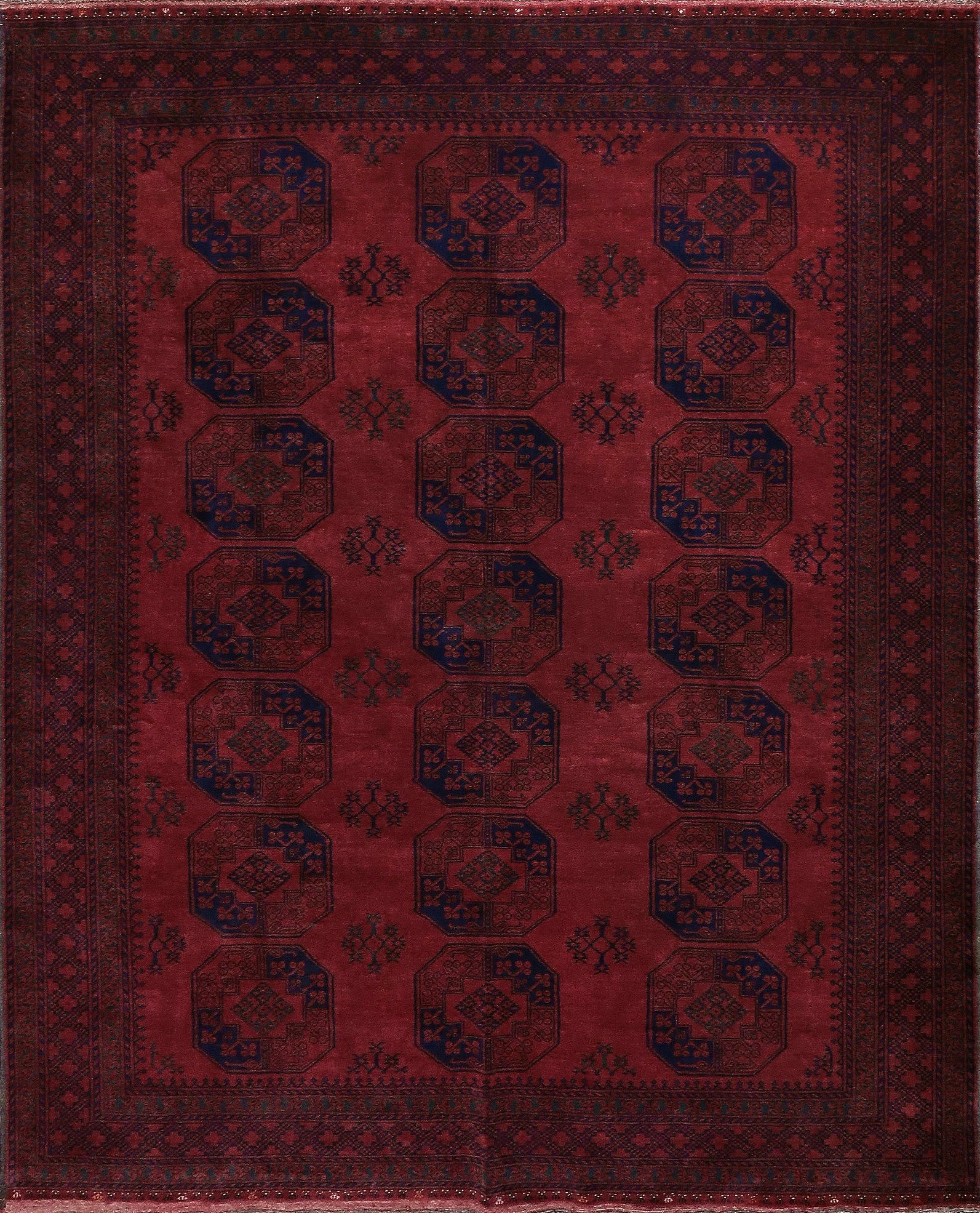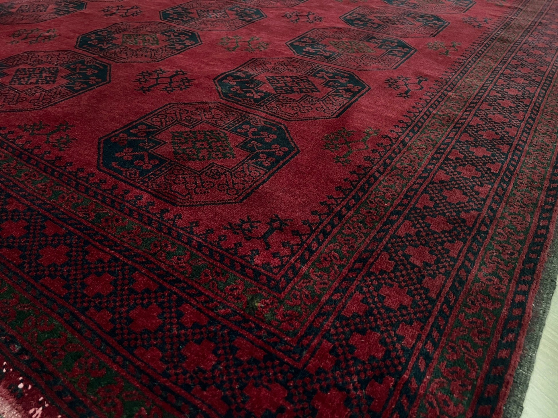 Burgundy Red Oriental Rug • Elephant Foot Turkmen Ersari Rug • 6x9 Handmade Wool Area Rug for Living Room, Bedroom, Dining, Kitchen, Study & Office