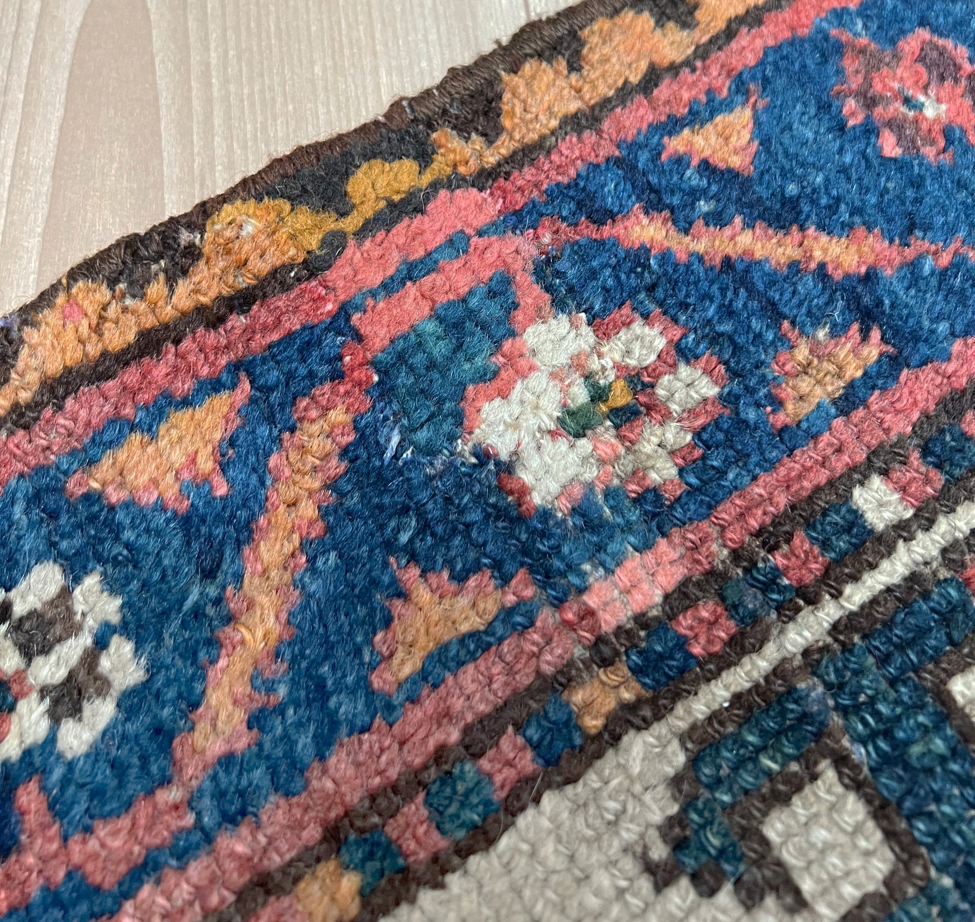 Material: Hand knotted, hand spun wool pile (naturally dyed with roots & plants) on a wool foundation.