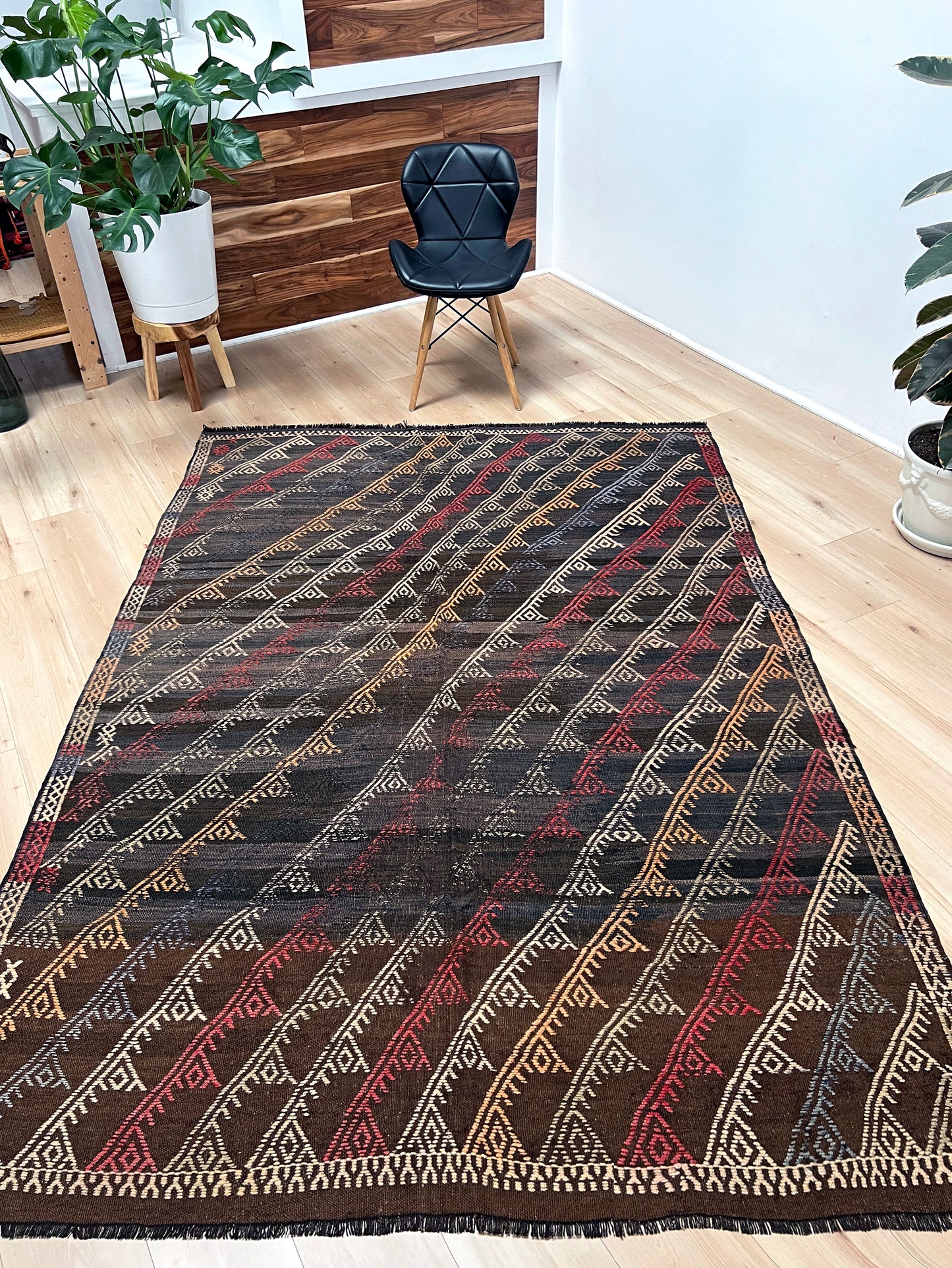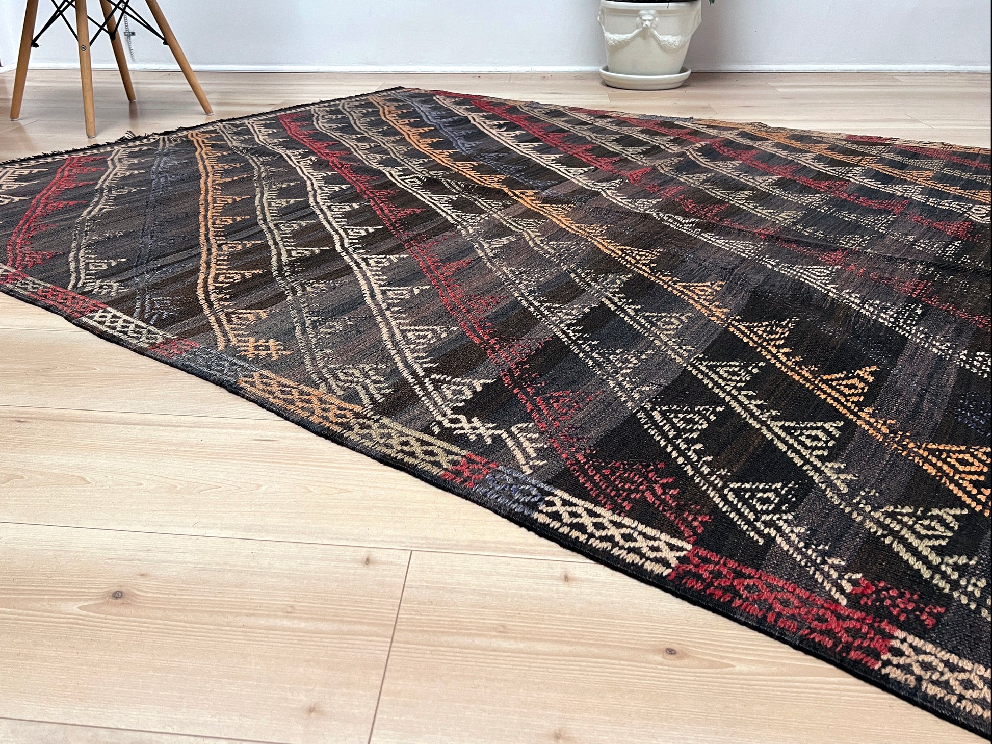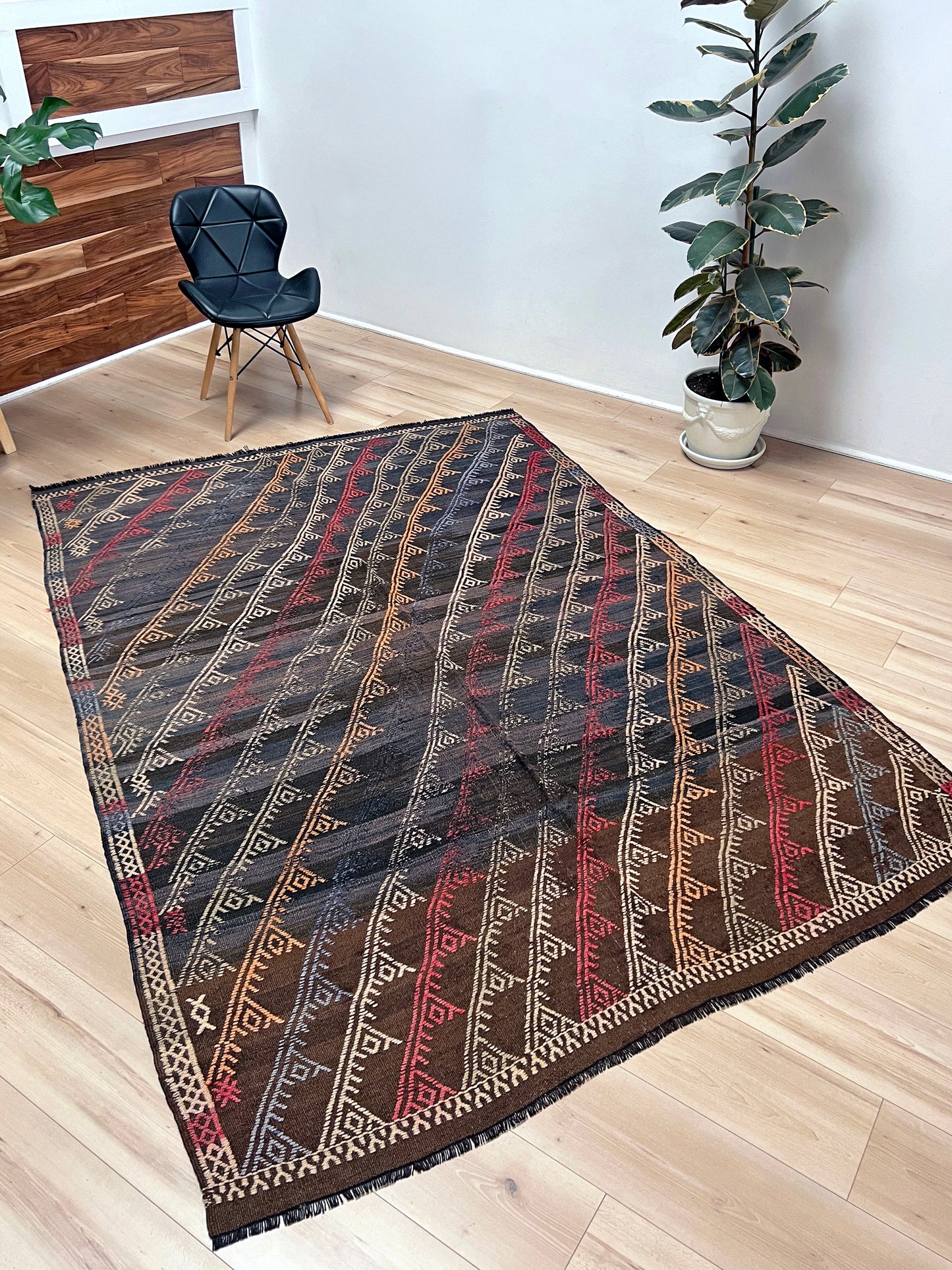 Konya Turkish Vintage Kilim • Handmade Wool Carpet • 6x8 Distressed Flatweave Rug for Living Room, Bedroom, Dining, Kitchen & Nursery