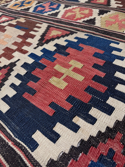 Kazak Tribal Caucasian Kilim • Handmade Vintage Geometric Flatweave Rug (5'x7'11")