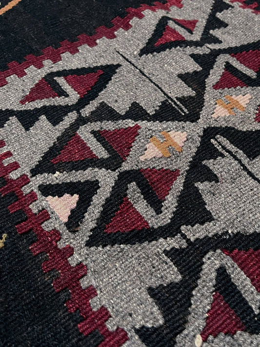 Maroon Afyon Turkish Kilim • Handmade Vintage Flatweave Rug (3′10″×6′1″)