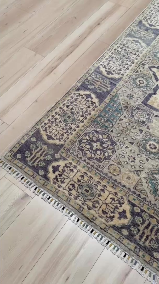 ✔ This handmade Mamluk rug is a mesmerizing blend of geometry and symmetry, where layered medallions and star-like floral motifs radiate from a serene, balanced center. The color palette—anchored in soft ivory, stone grey, teal, dusty aqua, and faded lavender—creates a cool, calming effect with just enough contrast to make the intricate details pop. Woven with top-quality wool, it has a refined texture and natural sheen that elevates any room without overpowering it. At nearly 5x7, it’s perfect for bringing quiet sophistication to a living room, bedroom, or reading nook.