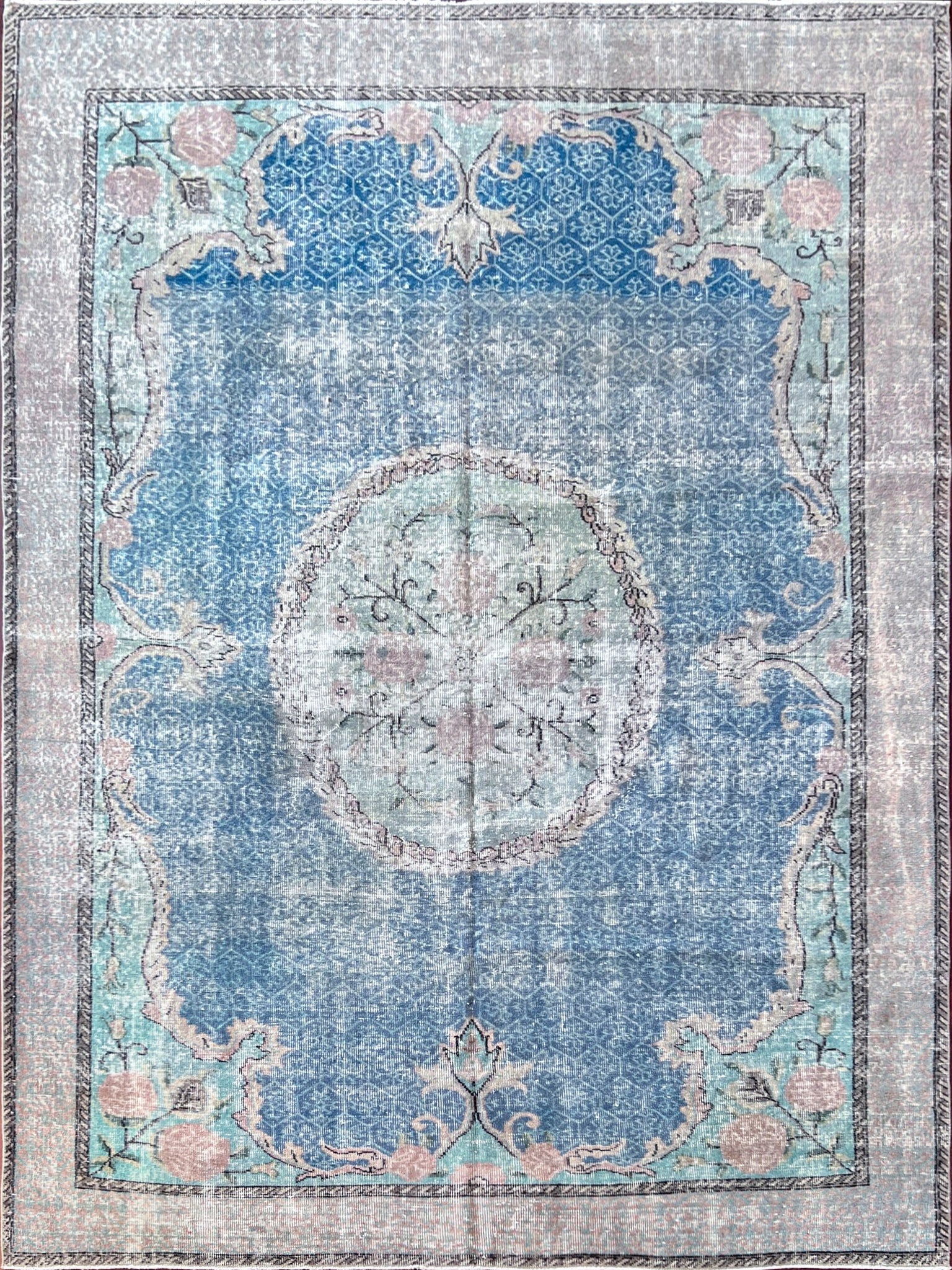 Turquoise Oushak • Transitional Vintage Turkish Rug (6'11"x10'7")