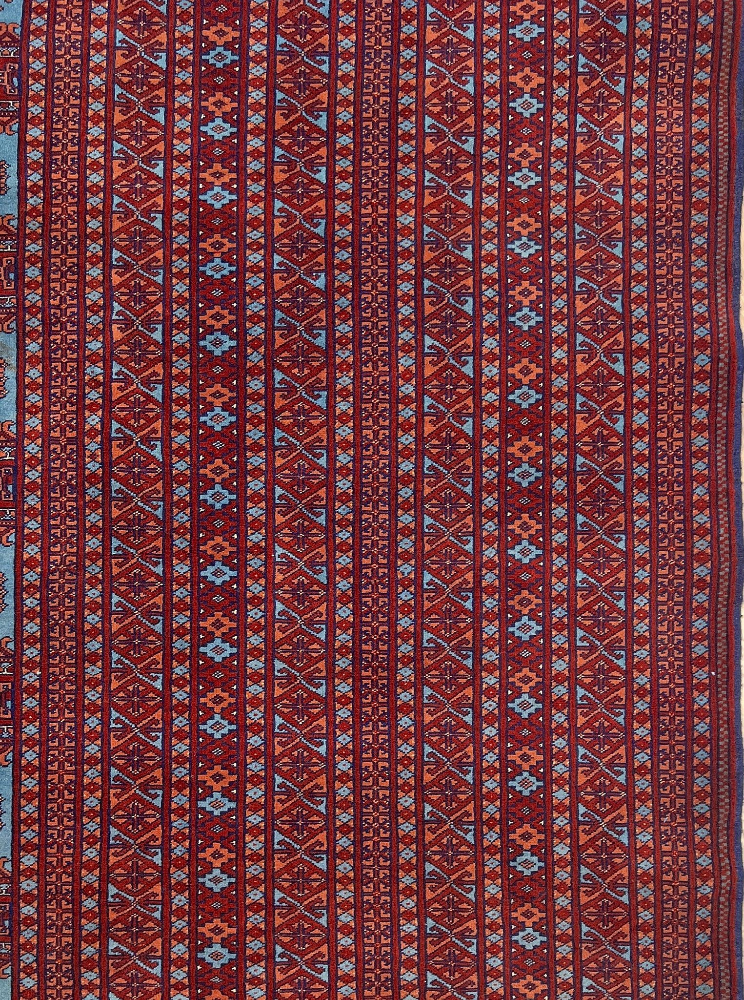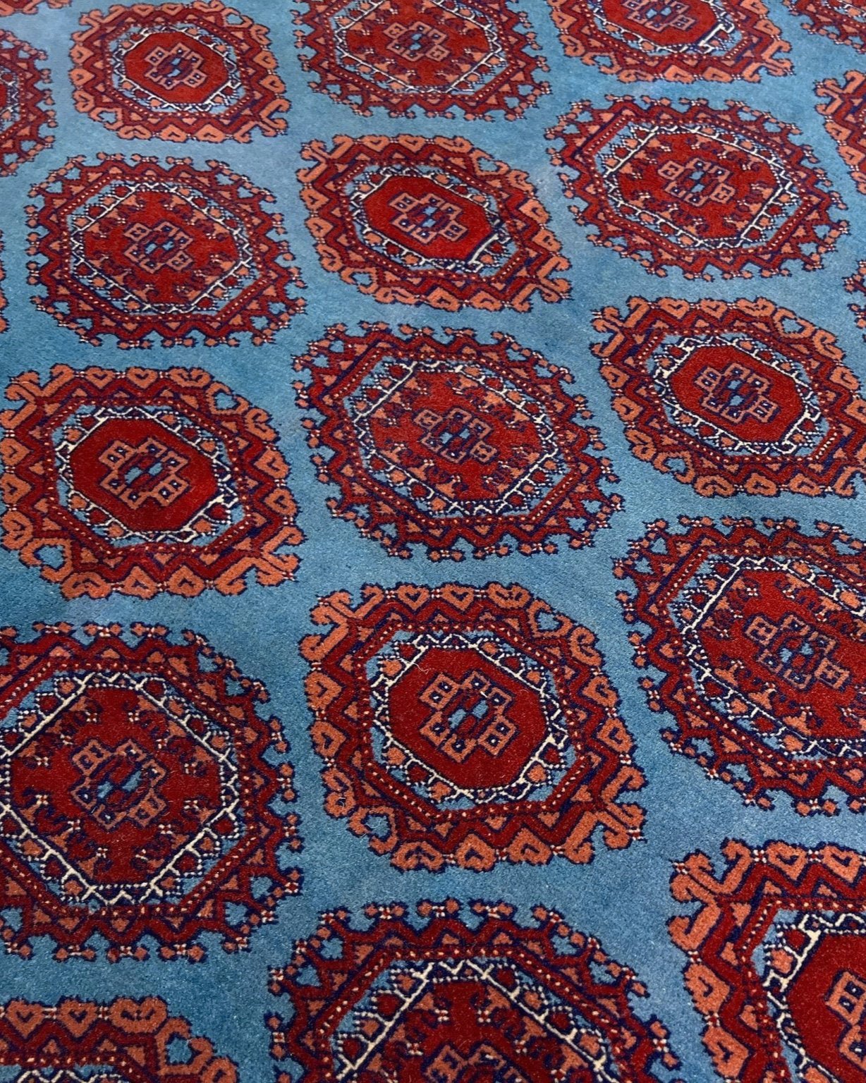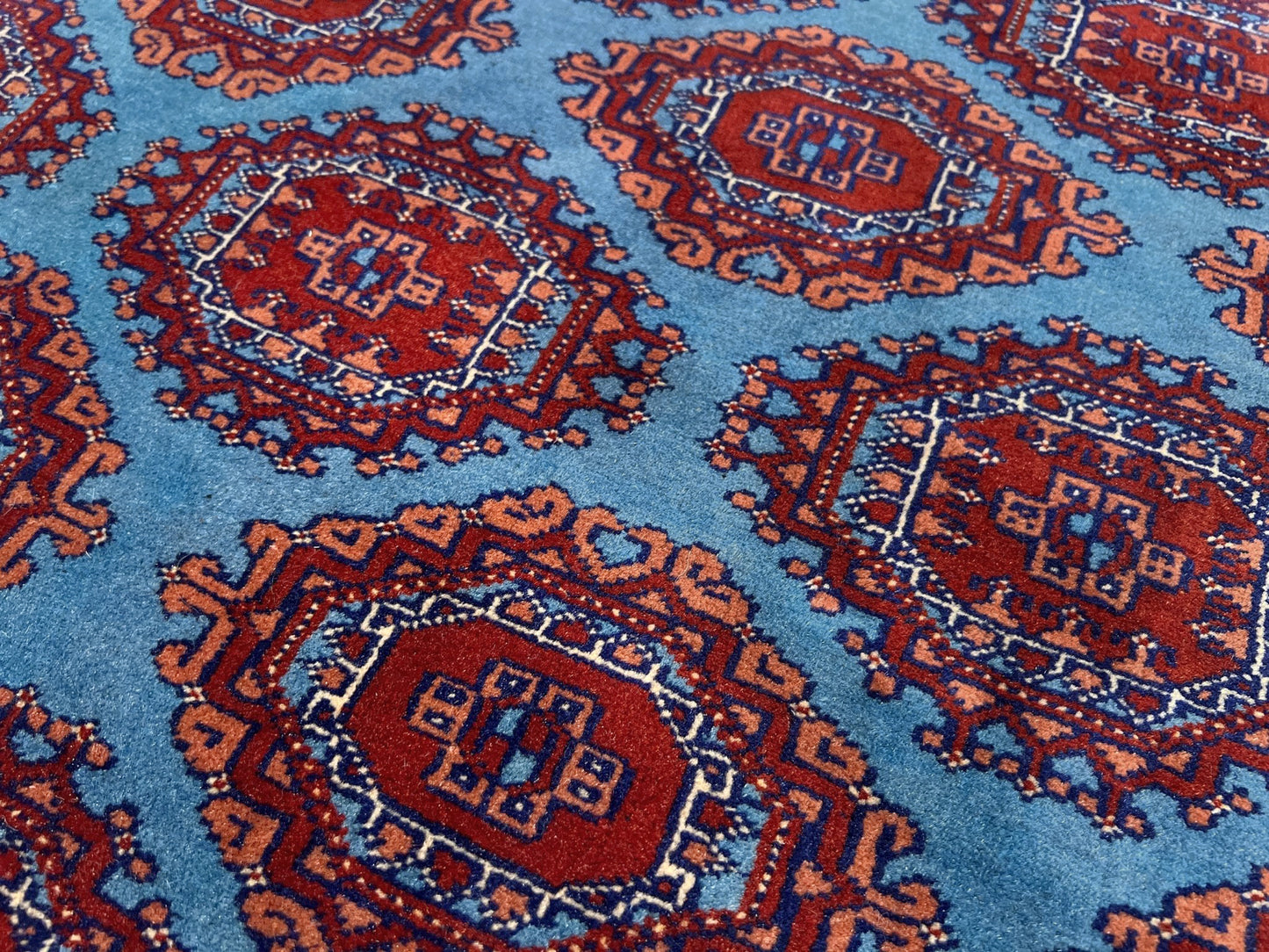 ✔ Crafted from top quality velvety wool, this rug Turkmen rug boasts the classic Bukhara design on a very rare blue field.