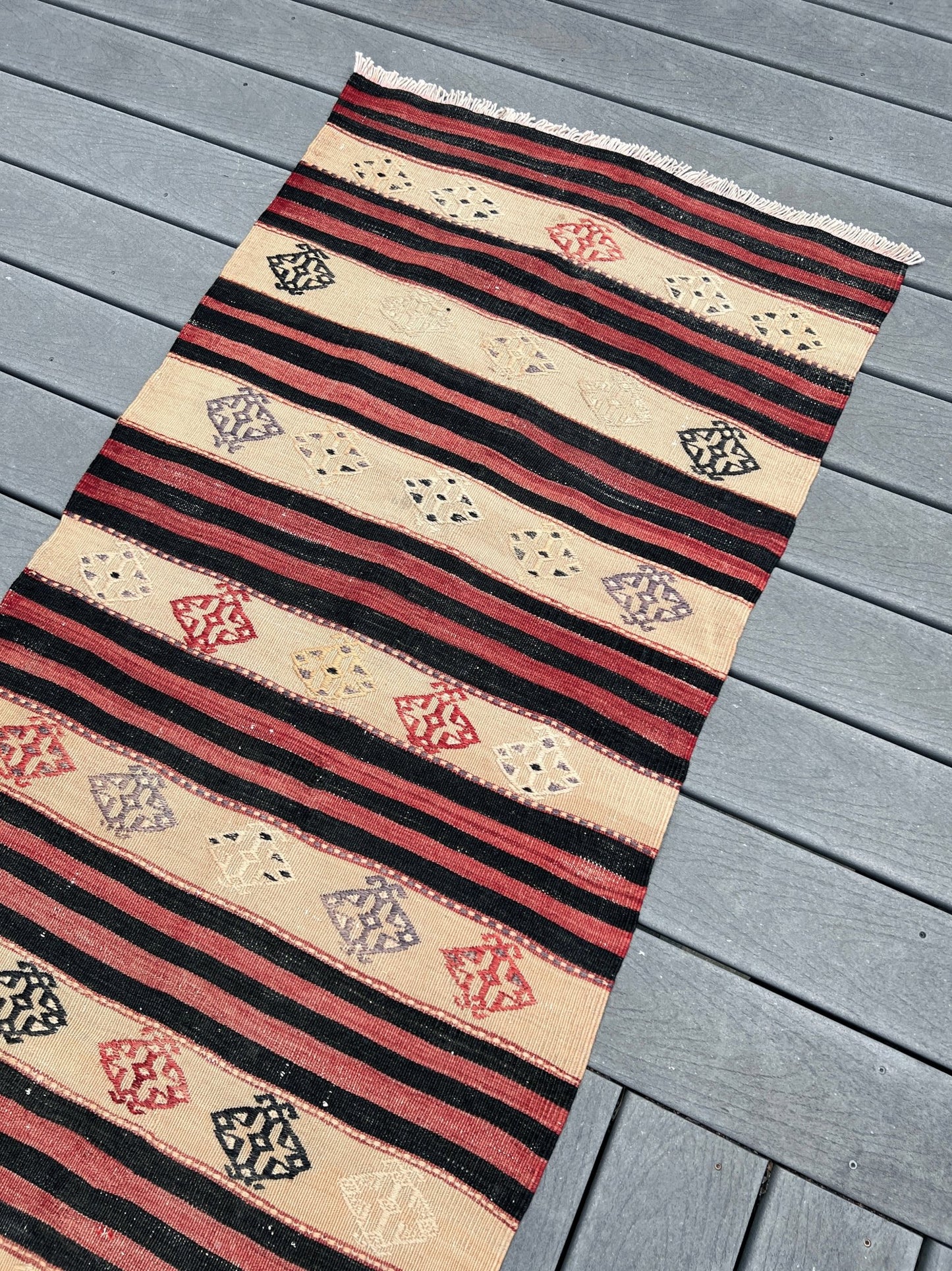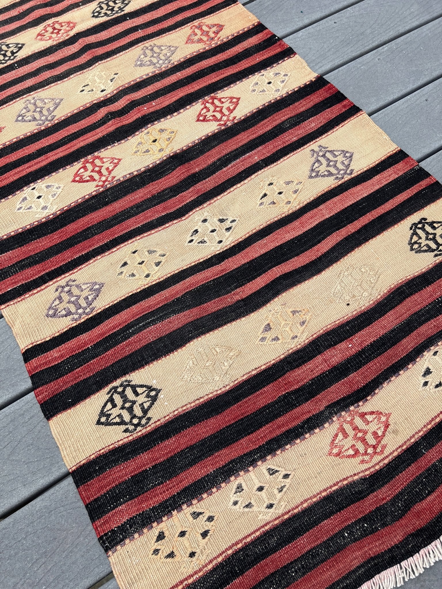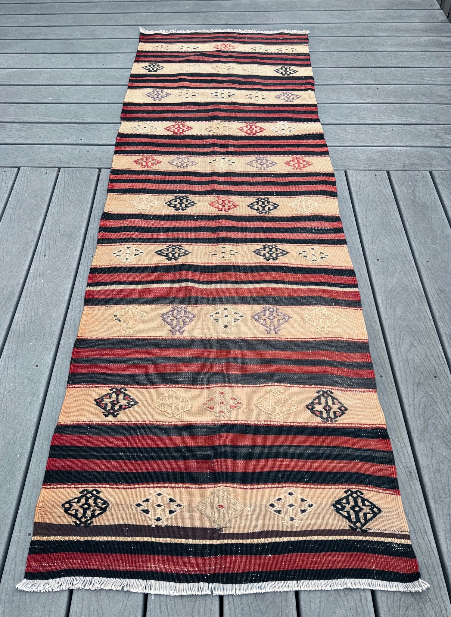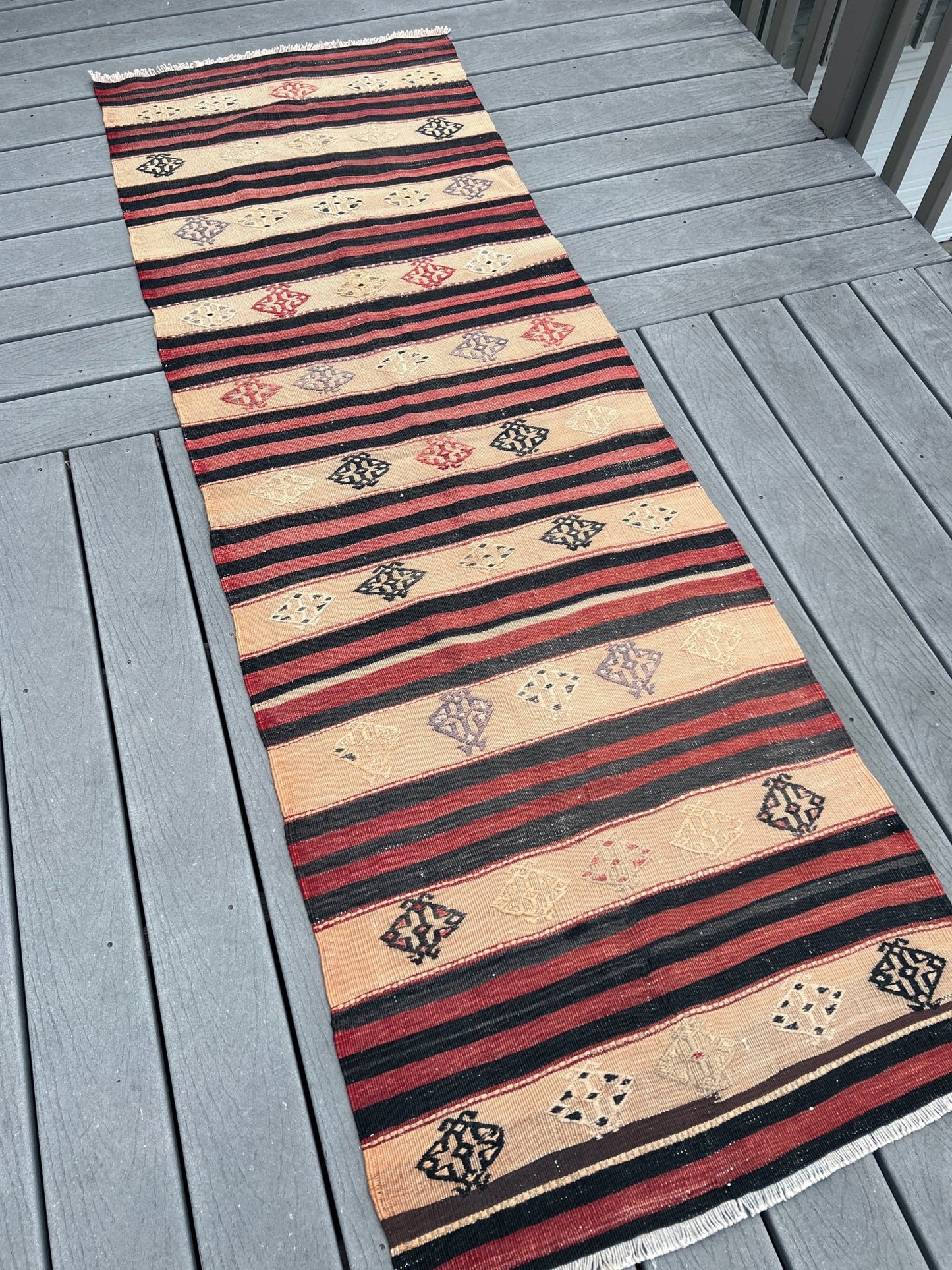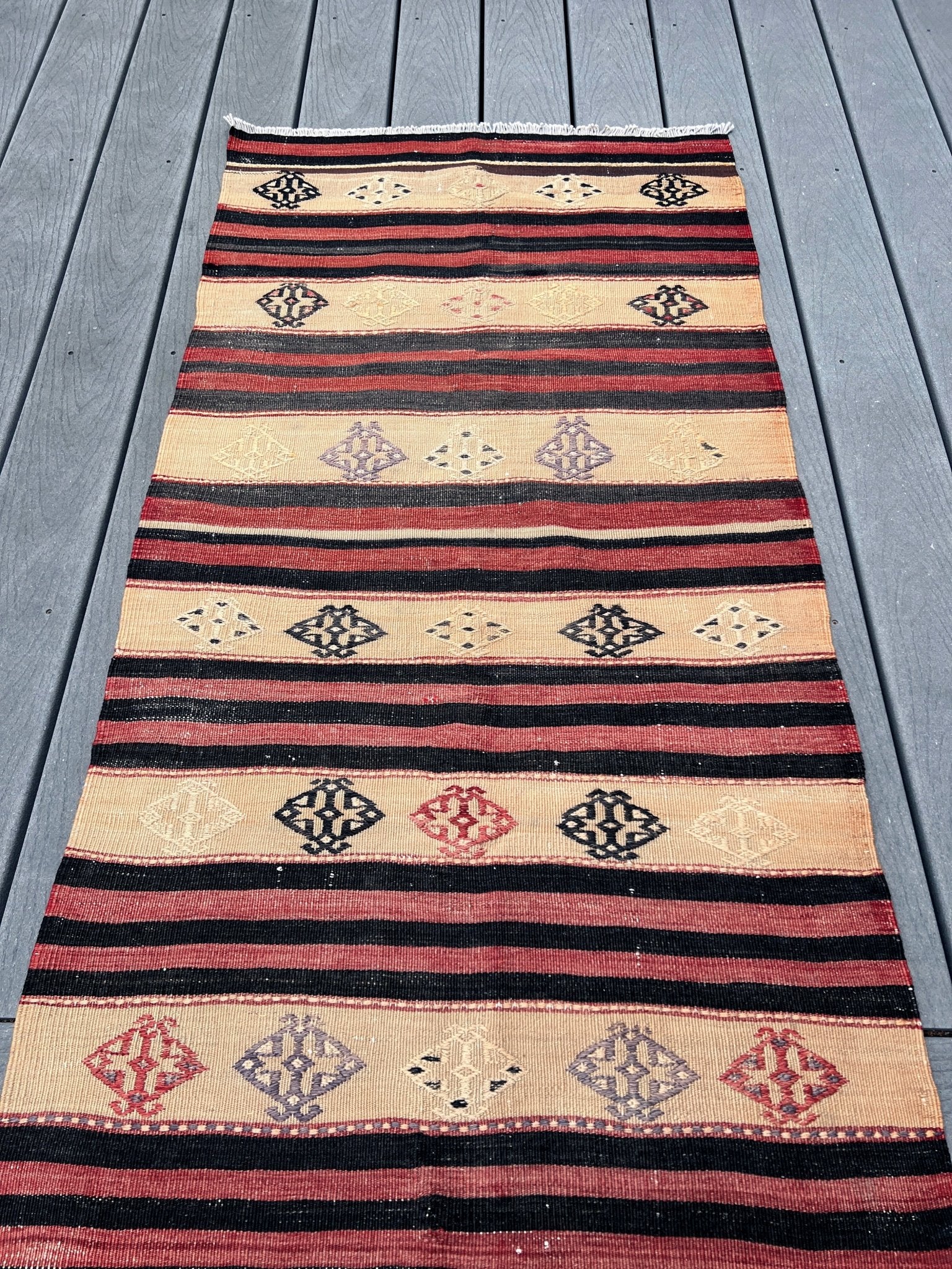 Turkish Kilim Rug • Vintage Anatolian Runner • Handmade Rug for Hallway, Entry, Living Room, Bedroom & Office