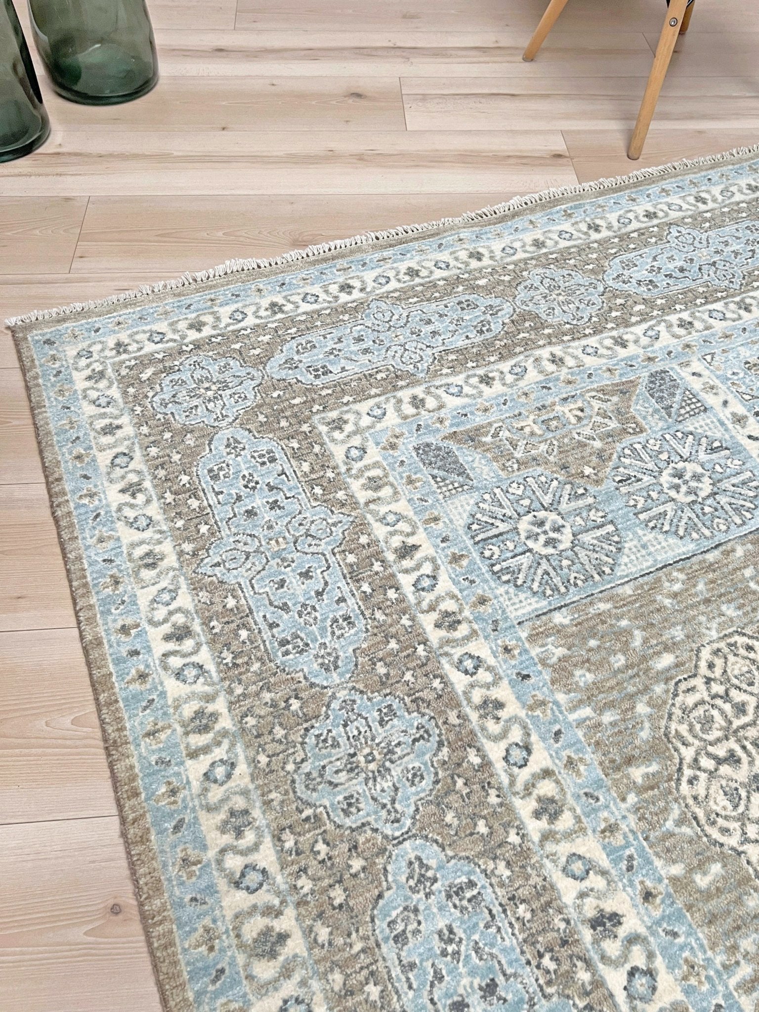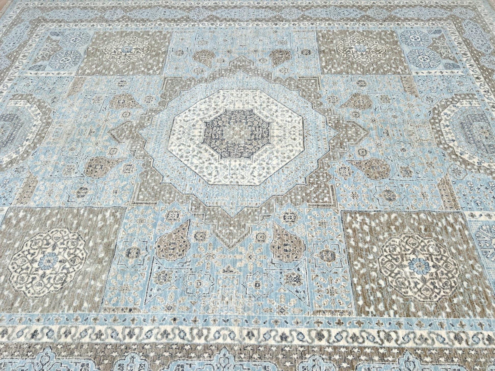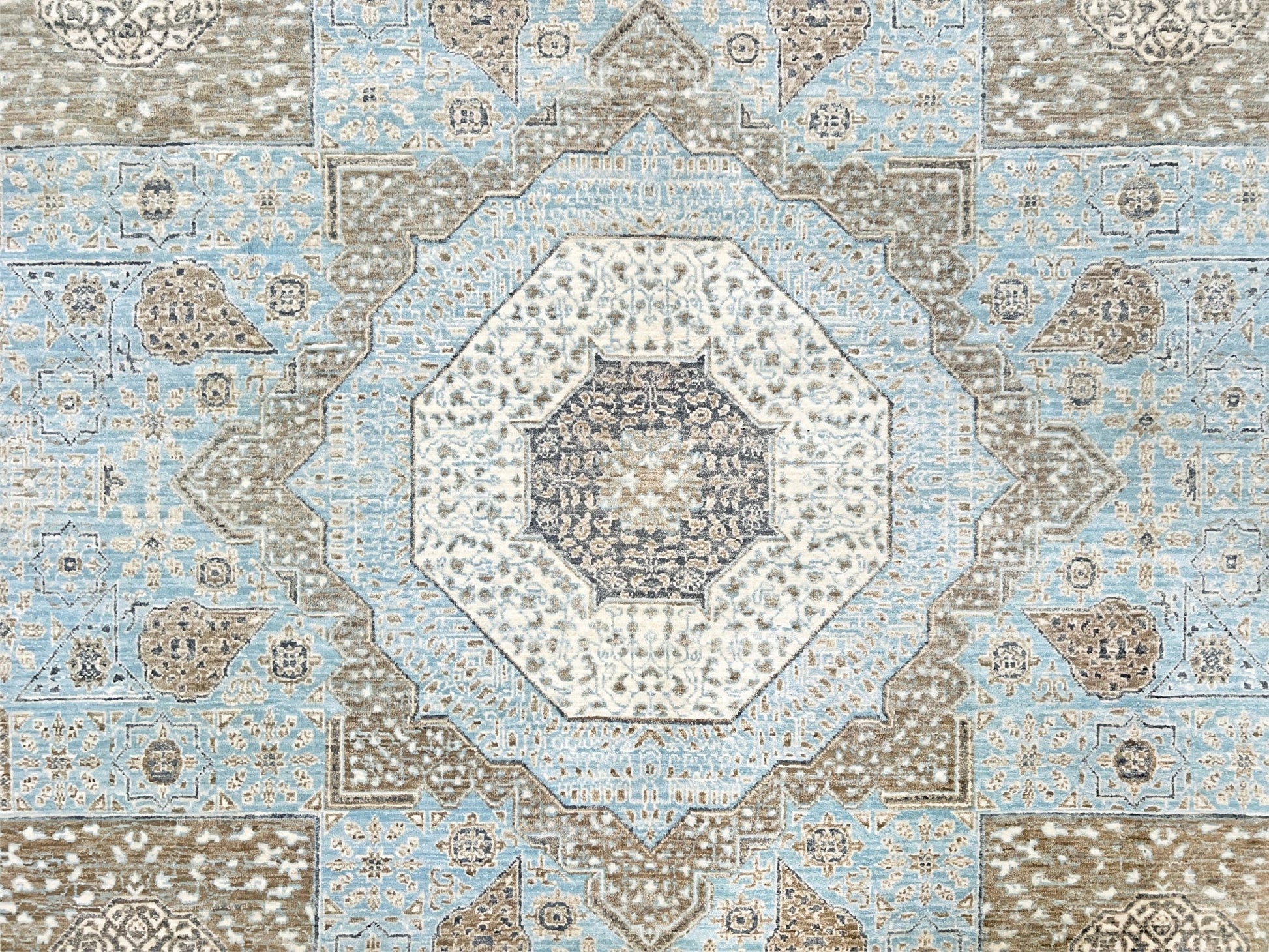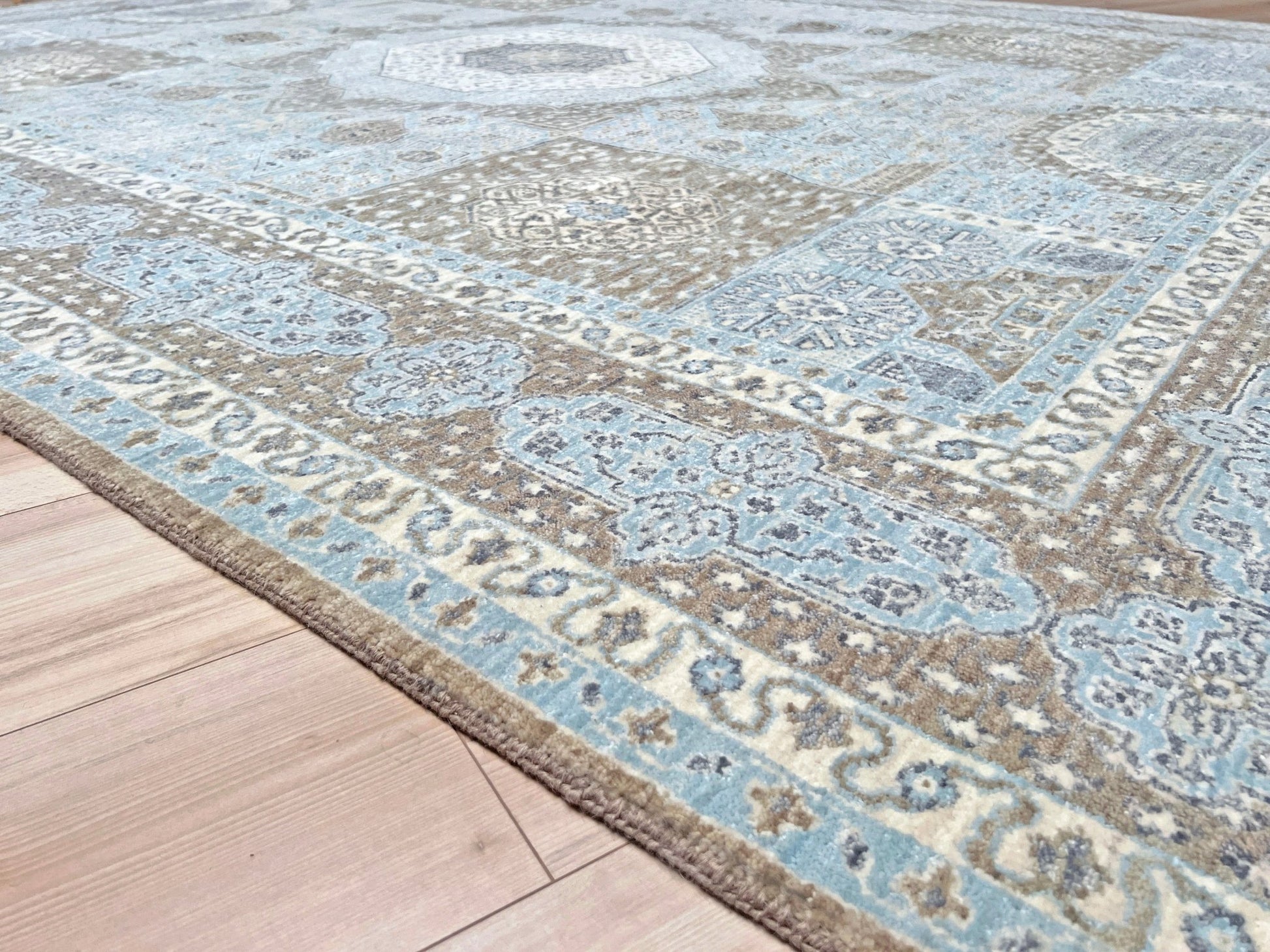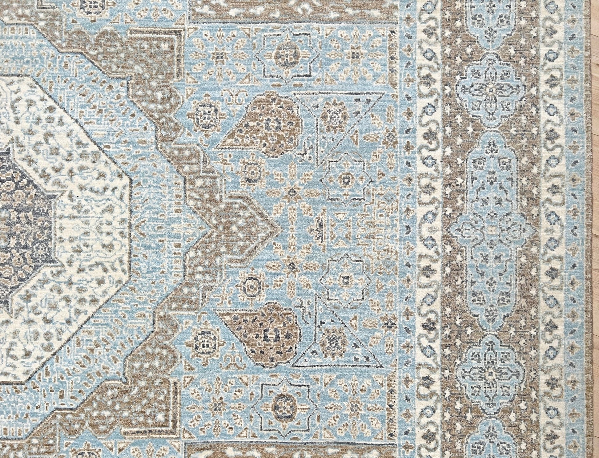 Baby Blue Mamluk Area Rug • Handmade Wool Carpet • 8x10 Area Rug for Living Room, Bedroom, Dining & Office