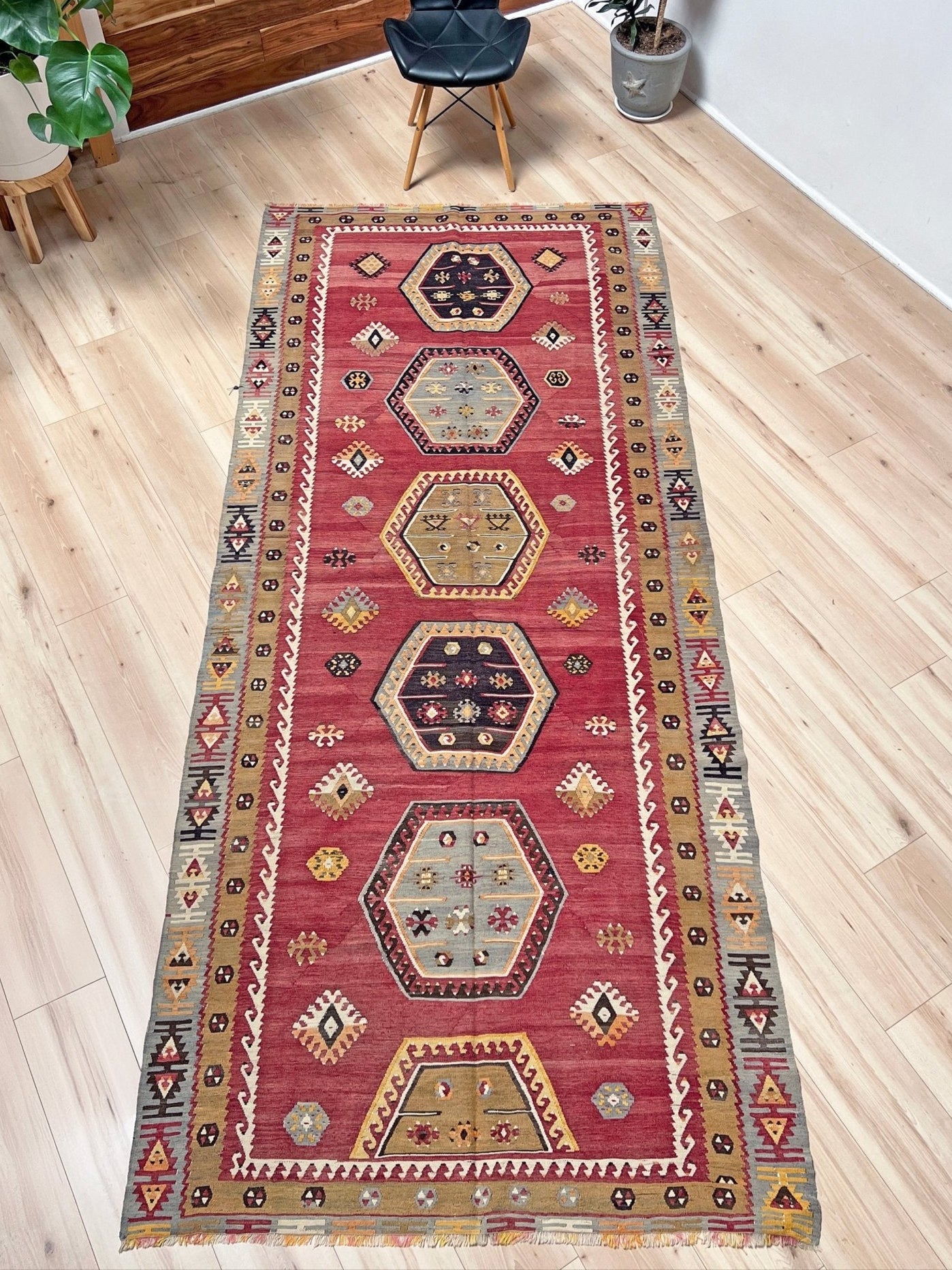Sarkisla Kilim Vintage Turkish Rug • Handmade Wool Carpet • Flatweave Runner Rug for Hallway, Bedroom, Kitchen & Nursery