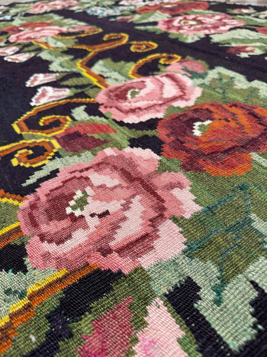 Moldovan Rose Kilim • Vintage European Floral Flatweave Rug (7'8"x12'7")