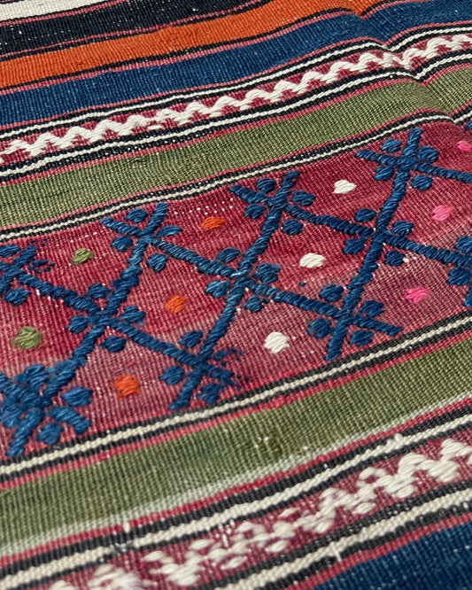 Embroidered Malatya • Vintage Turkish Kilim / Flatweave Rug (4'5"x6'6")