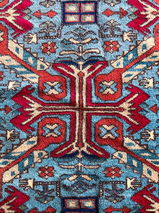 Sky Blue Garrus Bijar • Handmade Floral Rug (4'10"x6'8")