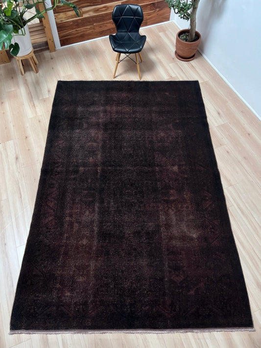 Dark Chocolate Distressed Rug • Handmade Abstract Turkish Area Rug (6'6"x9'8")