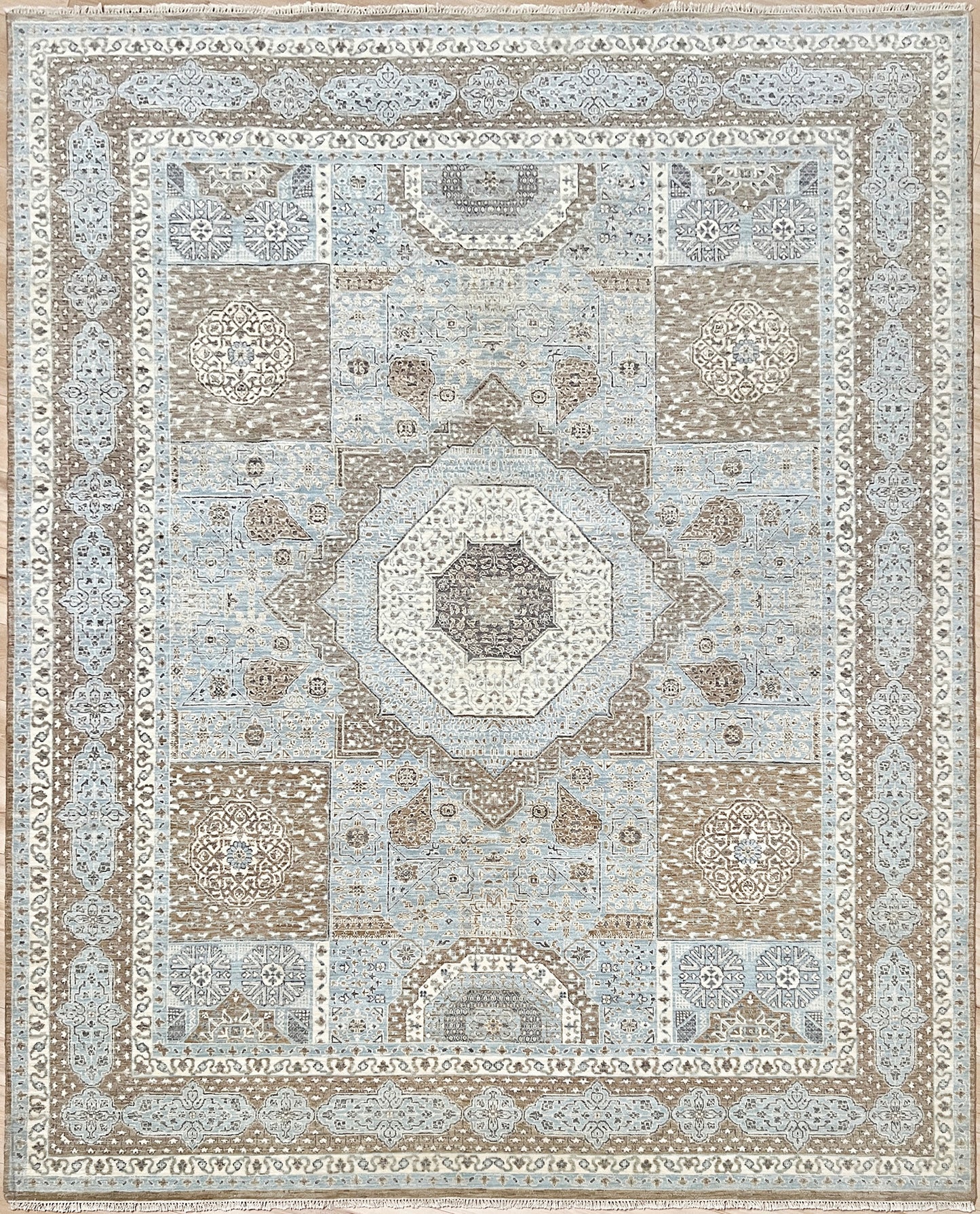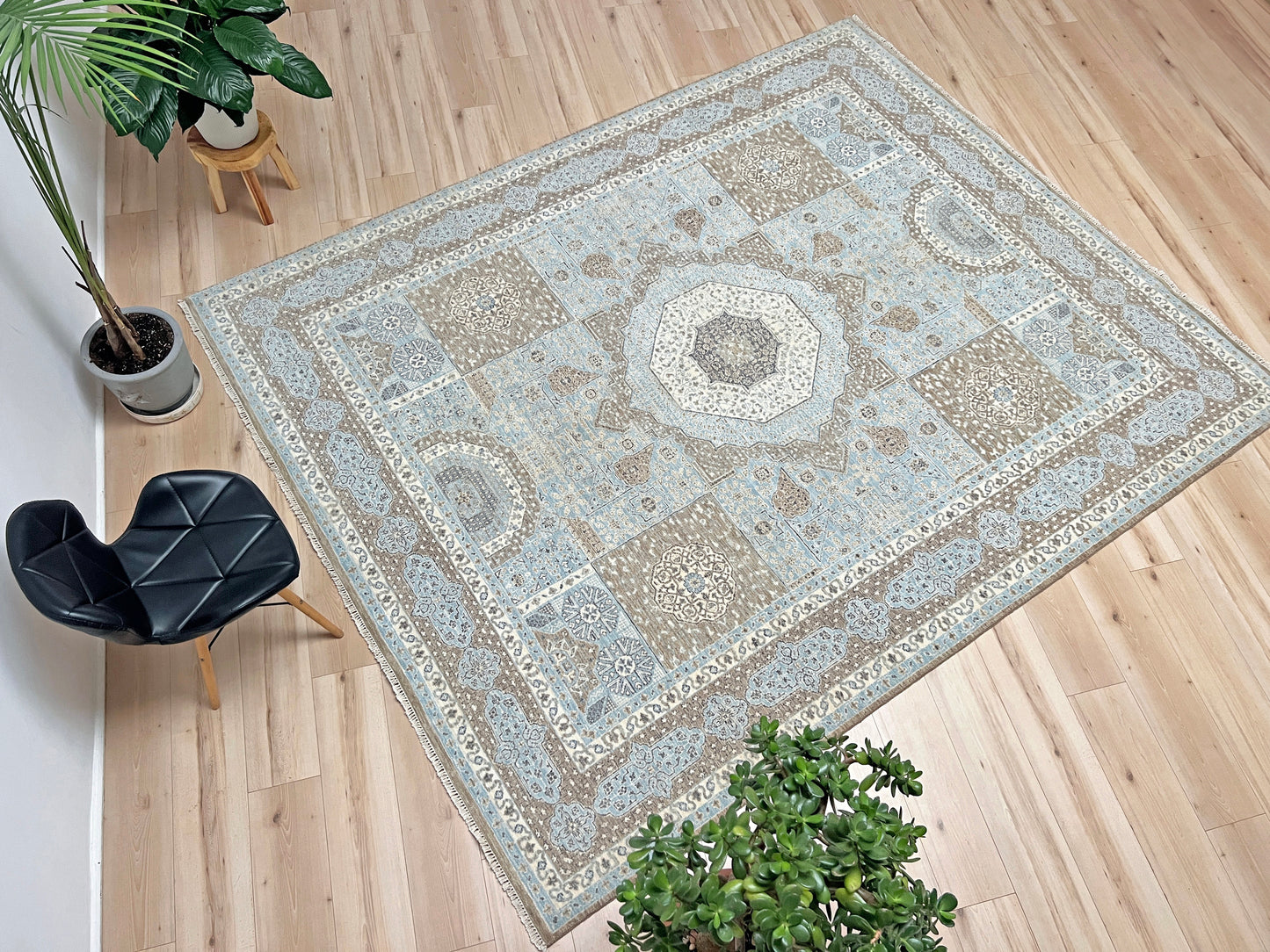 Baby Blue Mamluk Area Rug • Handmade Wool Carpet • 8x10 Area Rug for Living Room, Bedroom, Dining & Office