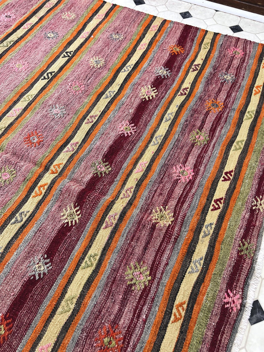Denizli Kilim • Vintage Turkish Rug (5'7"x7'6")