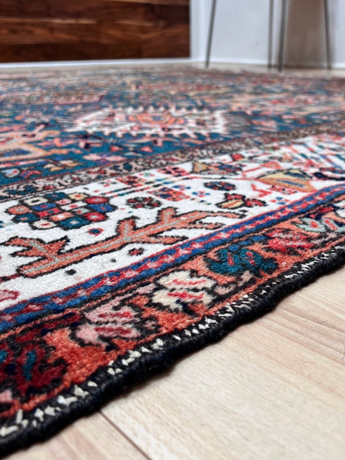 Semi-antique Karadja Persian Rug Handmade Wool Oriental Carpet • 7x9 Large Area Rug for Living Room, Bedroom, Dining & Office