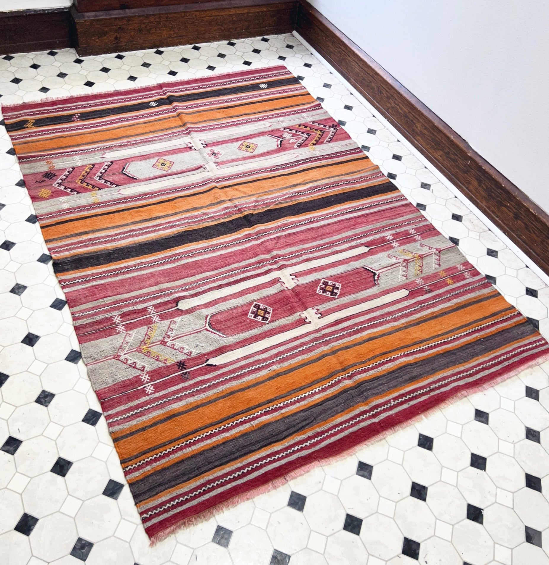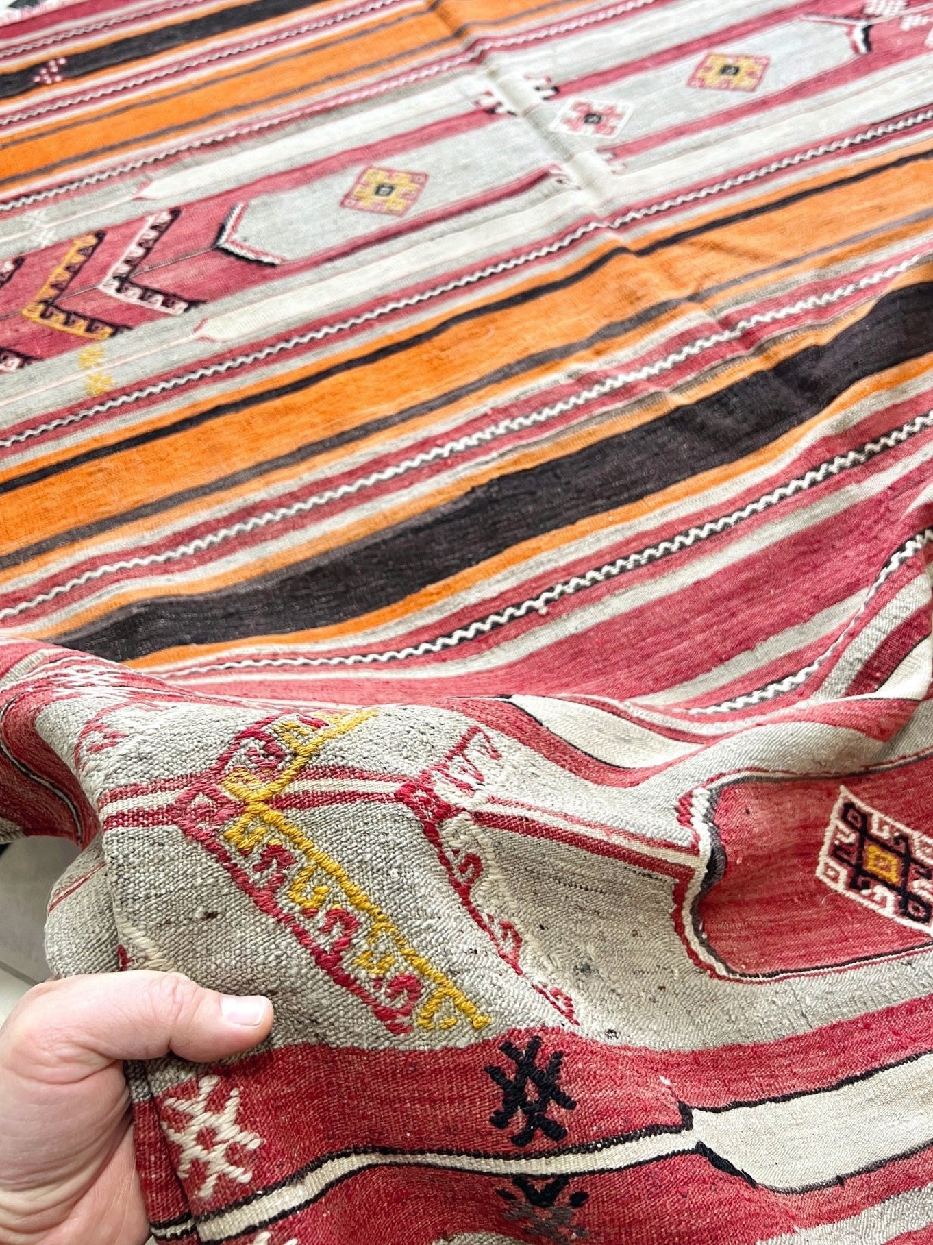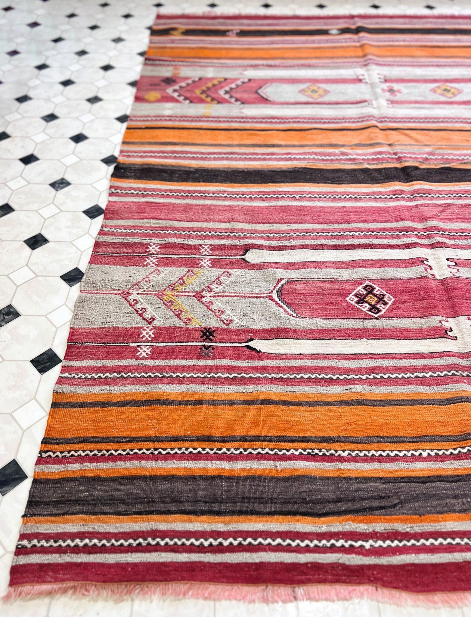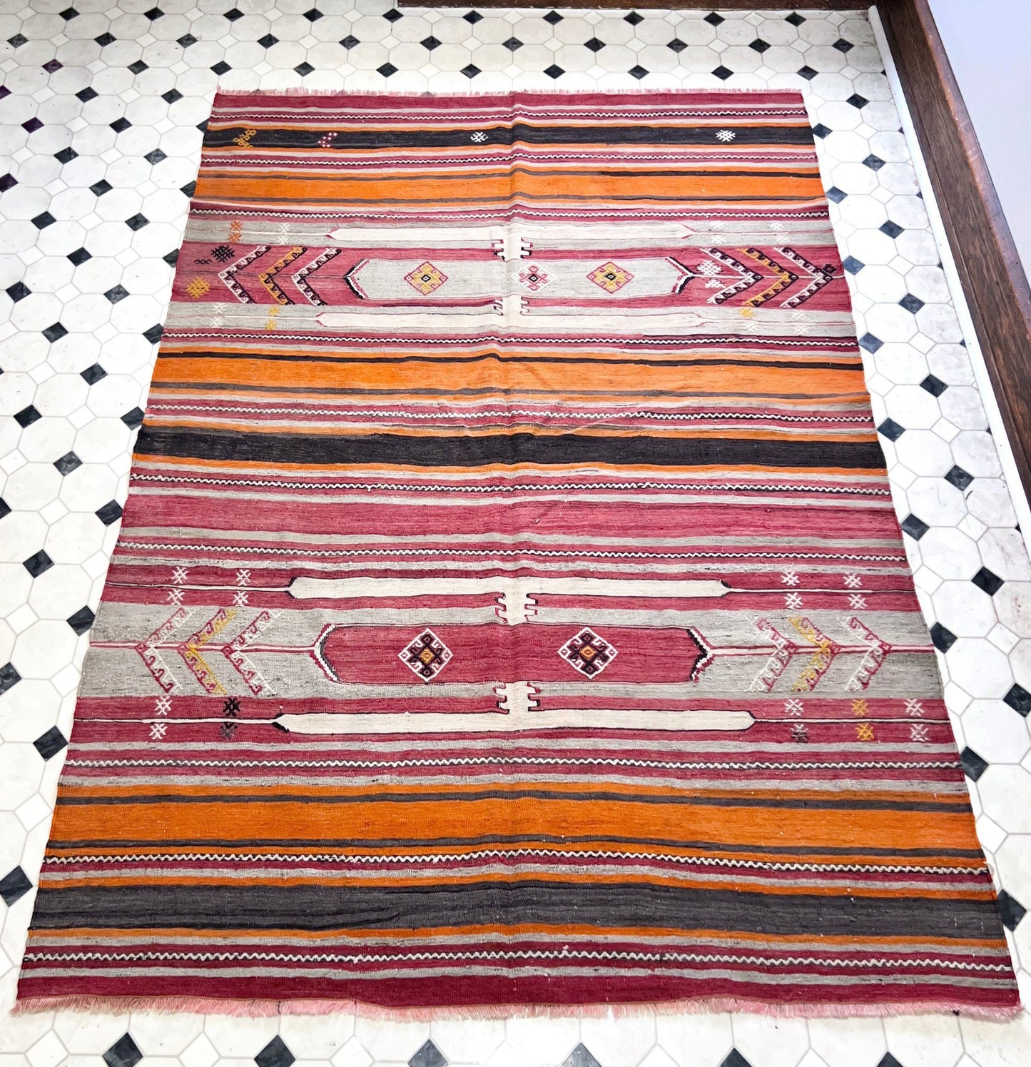 Sivas Turkish Kilim Rug • Vintage Anatolian Rug • Handmade Wool Rug for Living Room, Bedroom, Kitchen & Office