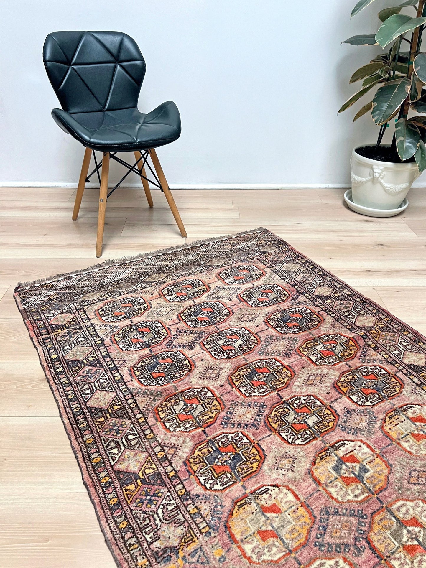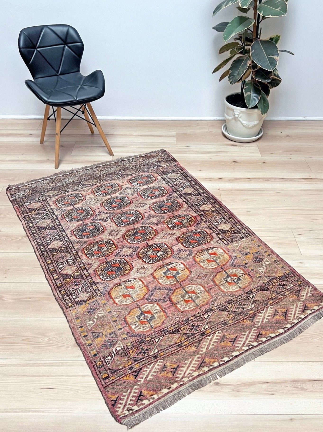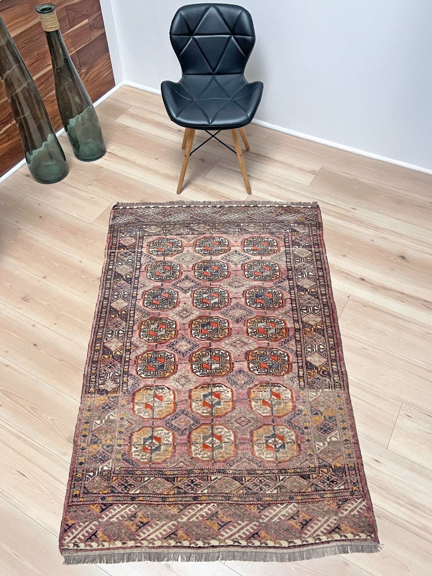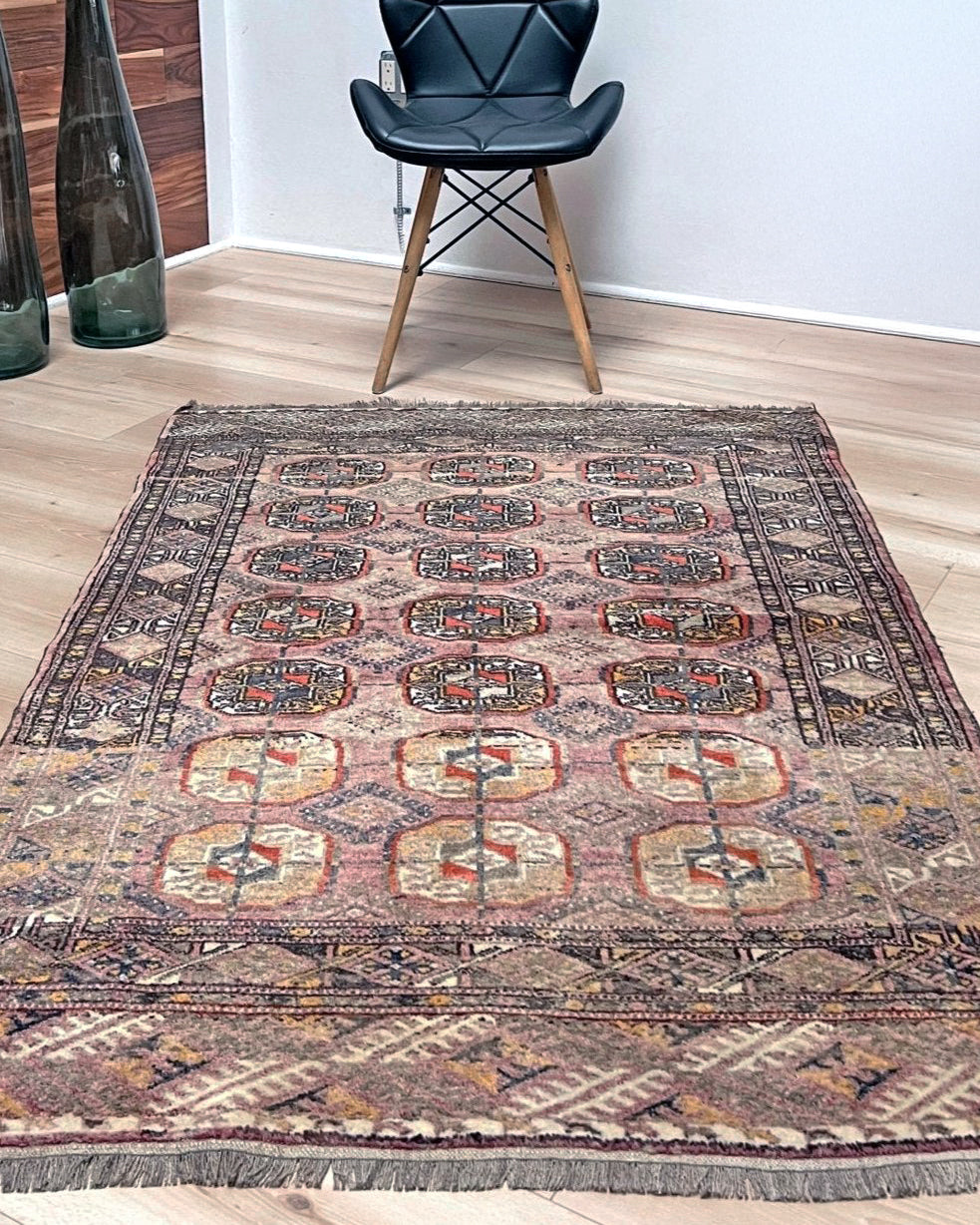 Muted Bukhara Vintage Turkmen Rug • Handmade Wool Carpet • 3x5 Transitional Scatter Rug for Living Room, Bedroom, Nursery, Kitchen, Entryway & Study
