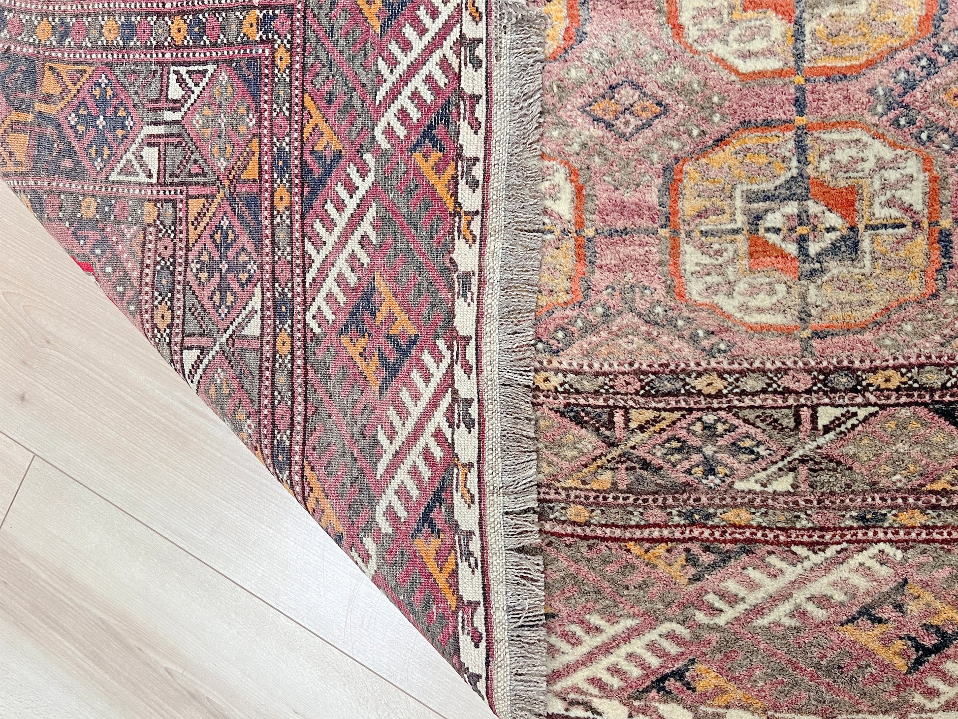 Condition: Excellent vintage condition. A light abrash (color variation) along one end reflects its natural dye process and age, adding character and authenticity. Structurally sound with no repairs. Professionally cleaned and ready to enjoy.