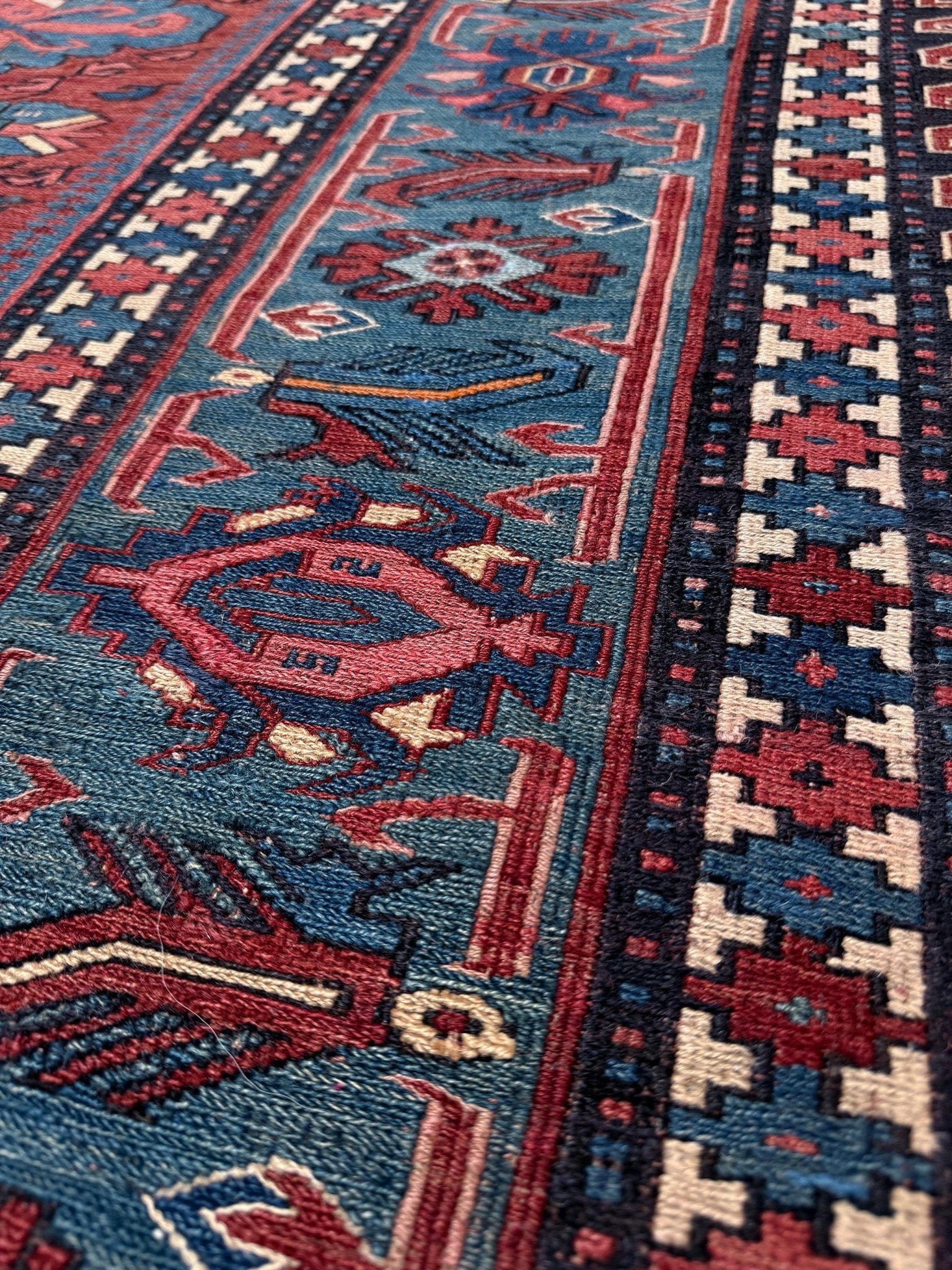 Woven in the highland Shirvan or Kuba regions of the South Caucasus—modern-day Azerbaijan—this Soumak is a rare testament to early 20th-century artisanry. Its sturdy flatweave is tougher than a kilim, and its richly dyed palette speaks to a mastery of form and meaning, likely made for a discerning local patron.