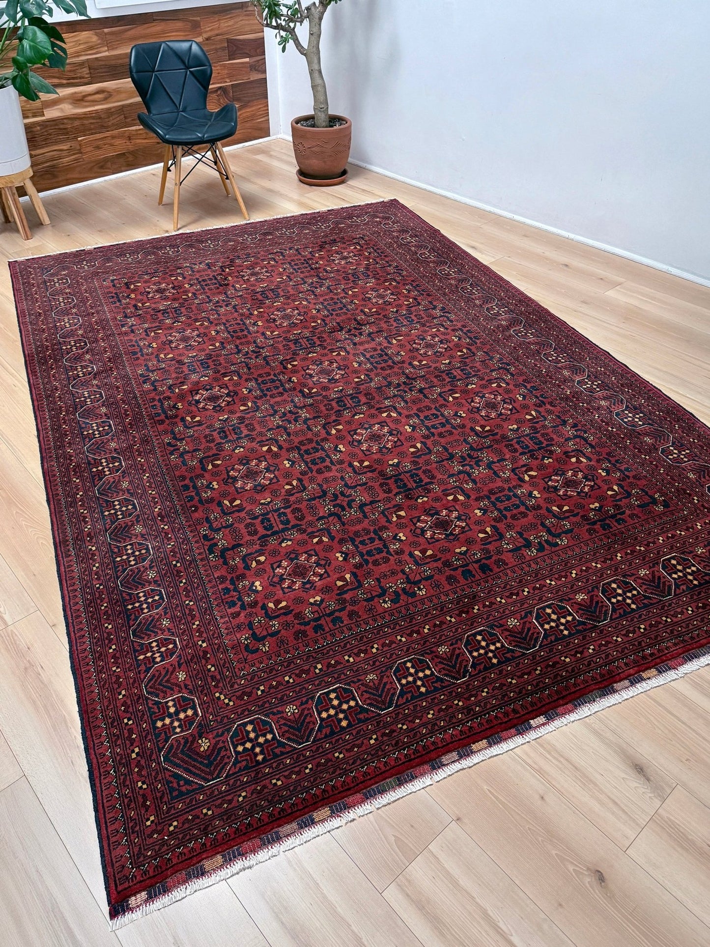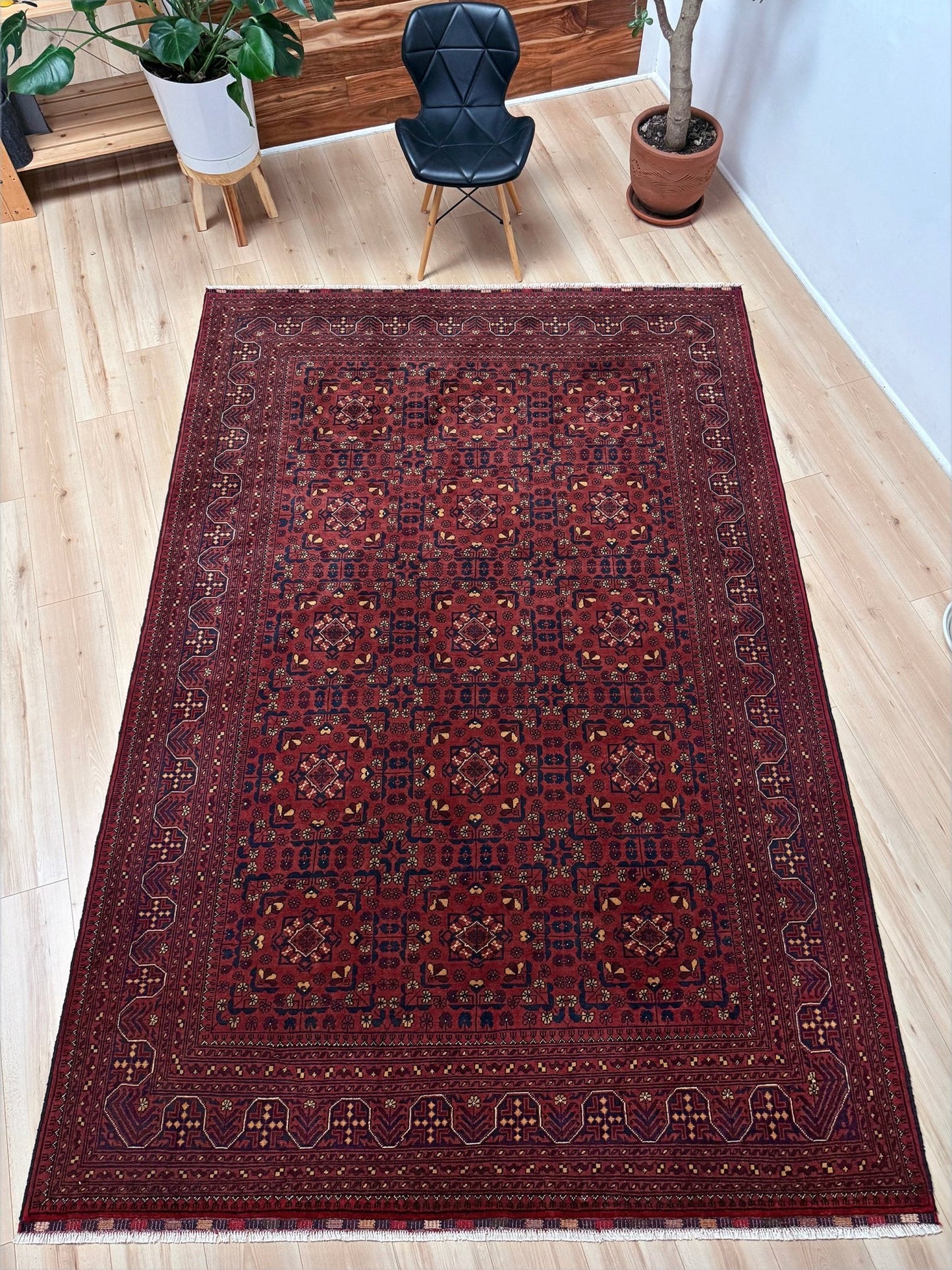 Deep Crimson Bilcik Traditional Turkmen Rug • Handmade Wool Carpet • 6x9 Area Rug for Living Room, Bedroom, Dining & Office