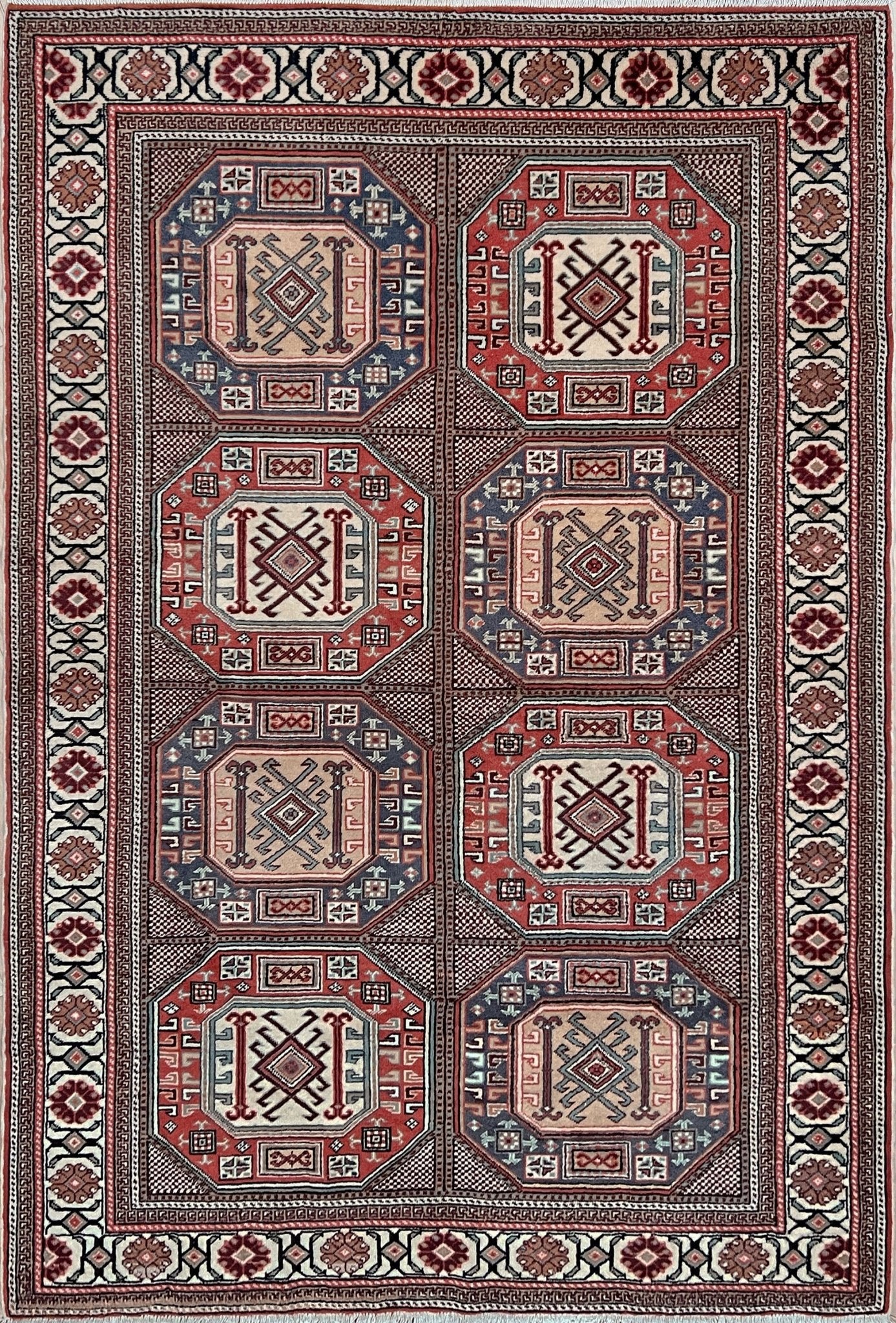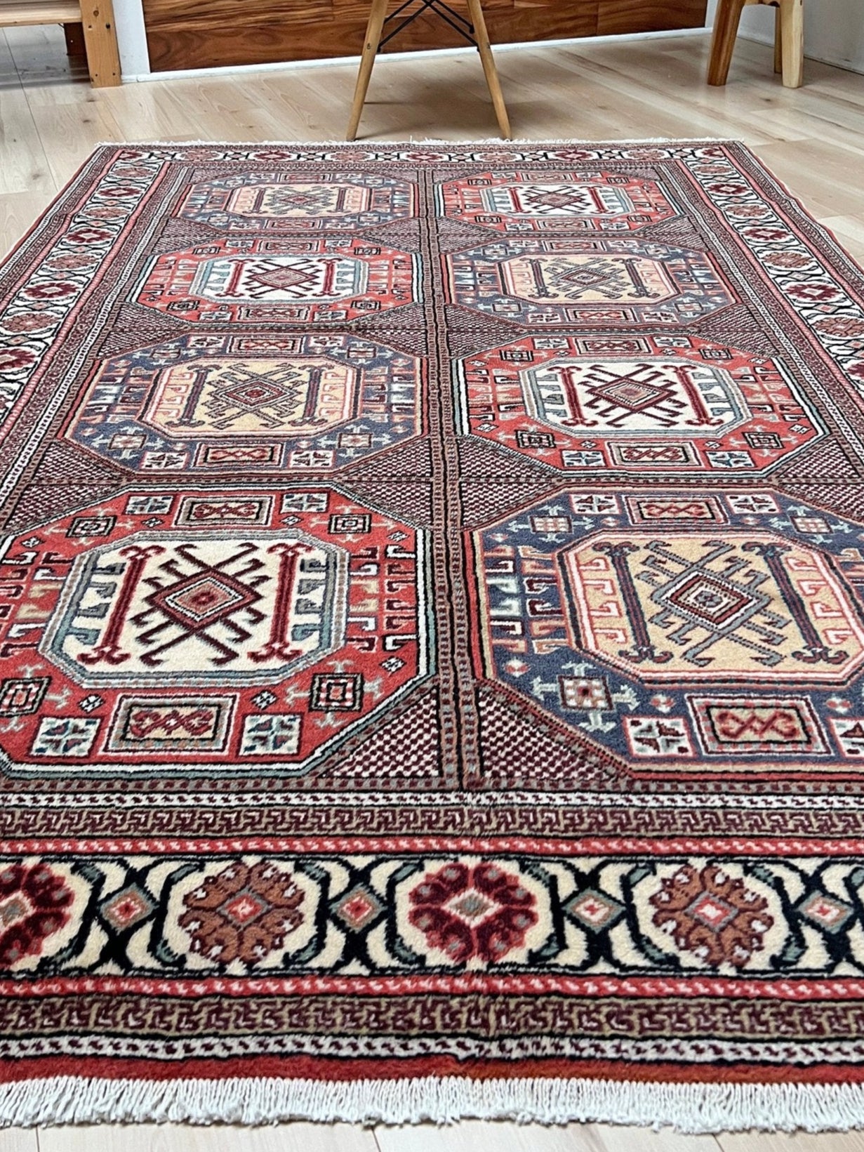 ✔ Introducing our captivating Turkish "Chest" rug, a sophisticated masterpiece that celebrates the beauty of traditional design. Its octagonal "chest" medallions are artfully framed by a delicate checkered pattern, adding layers of texture and complexity to the piece. This 5x7 ft rug combines deep reds, soft ivories, and rich blues in a playful yet elegant palette, creating a timeless look that commands attention. Handcrafted with precision, this rug is designed to elevate any space, inviting you to explore its intricate details again and again.