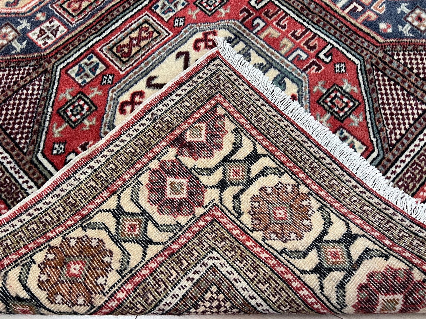 Material: Hand knotted, hand spun wool pile on a wool foundation.