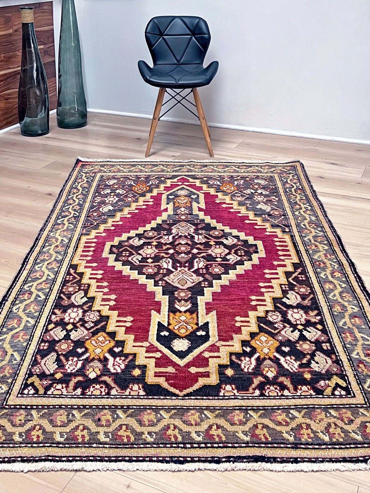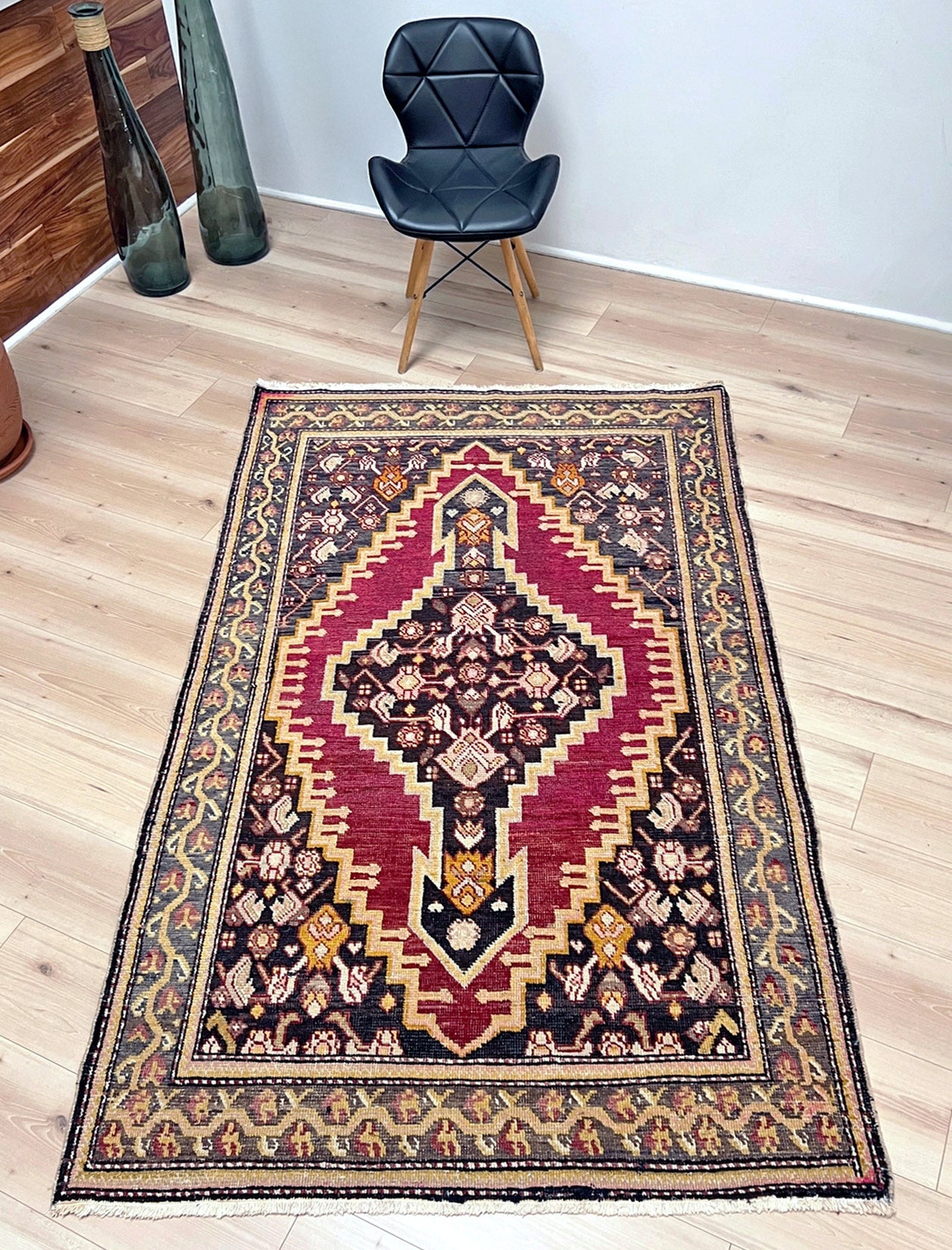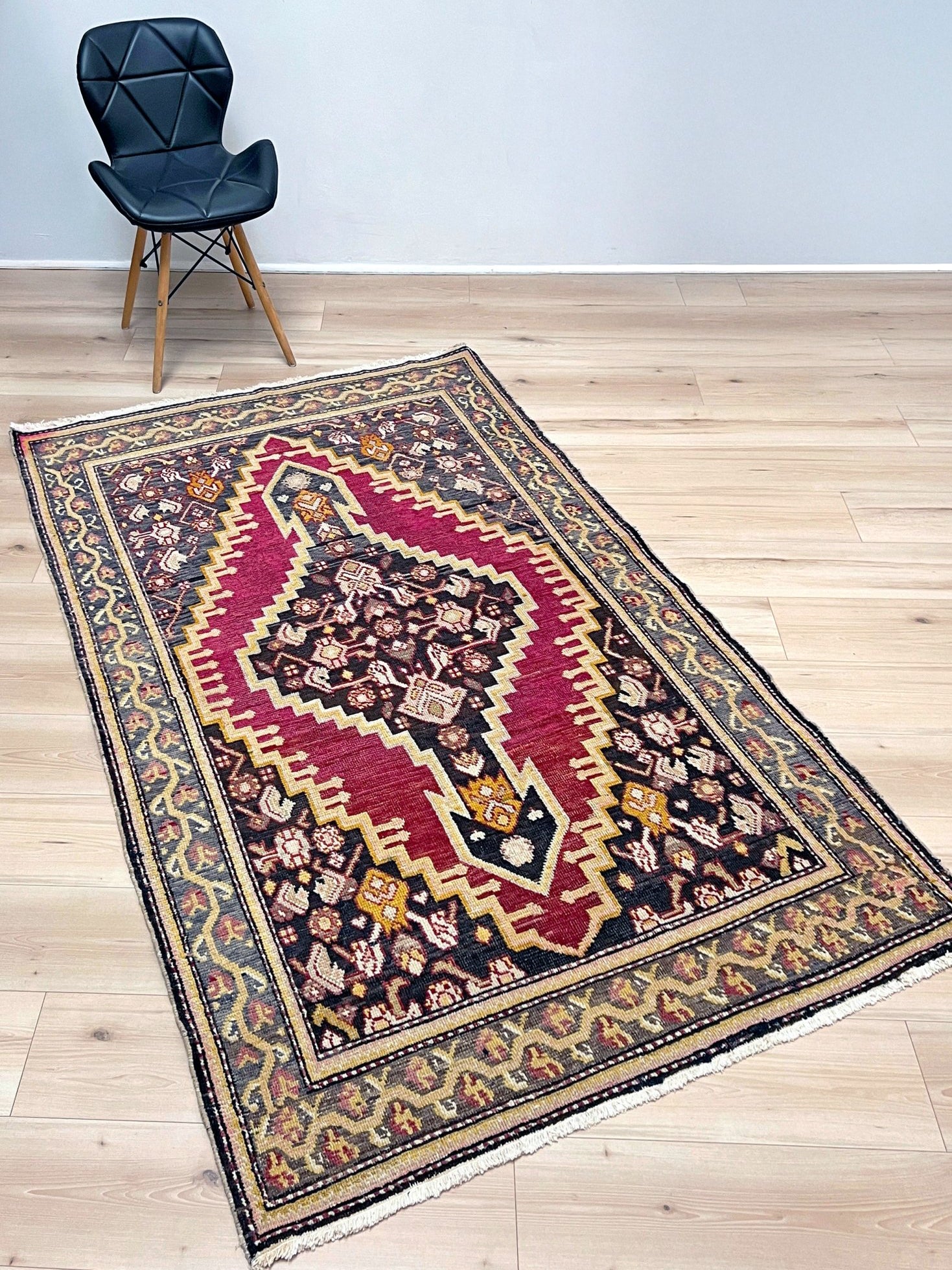 Derbend Caucasian Accent Rug • Vintage Wool Carpet • 4x6 Handmade Scatter / Accent Rug for Living Room, Bedroom, Dining, Kitchen, Study & Office