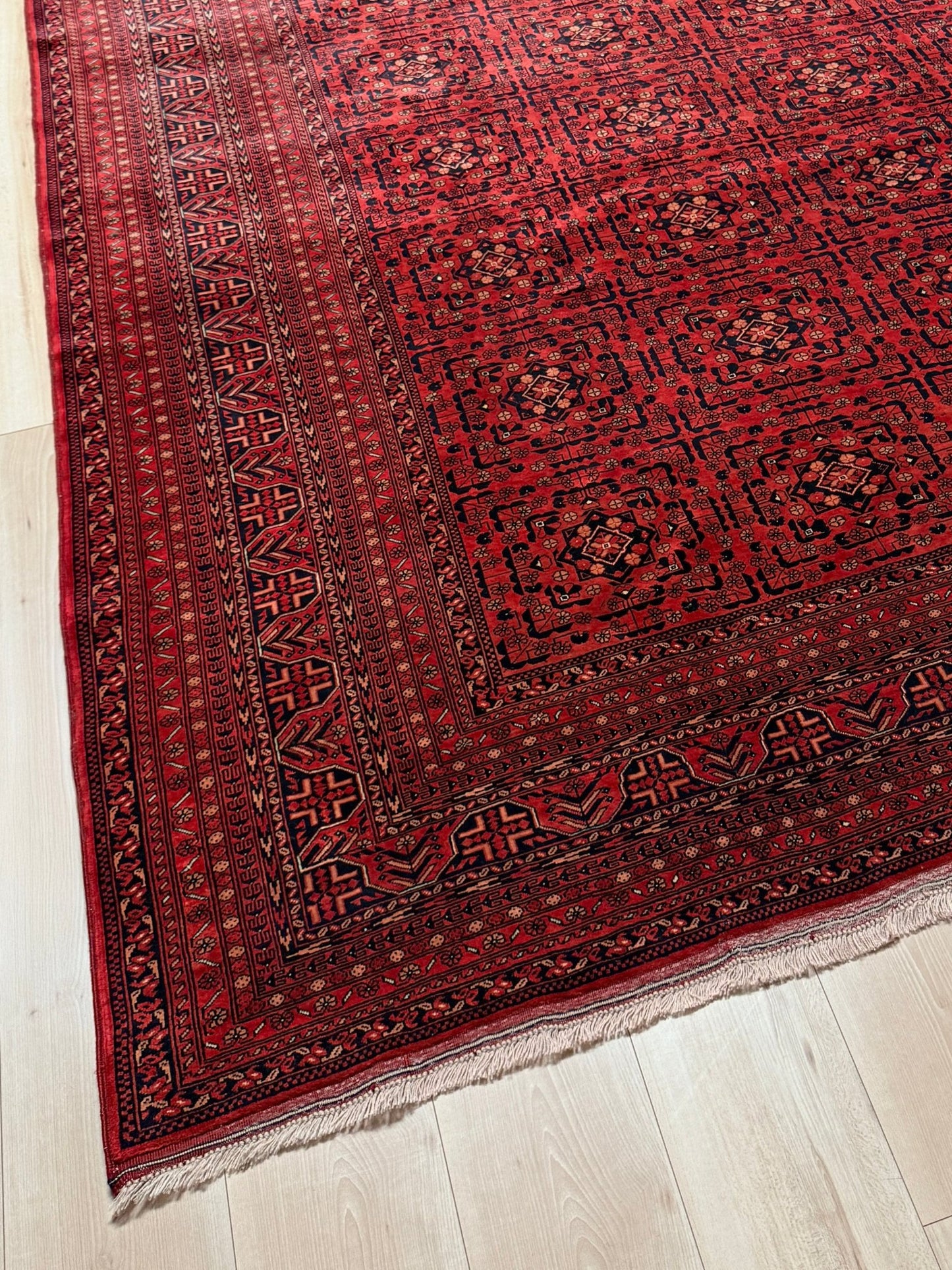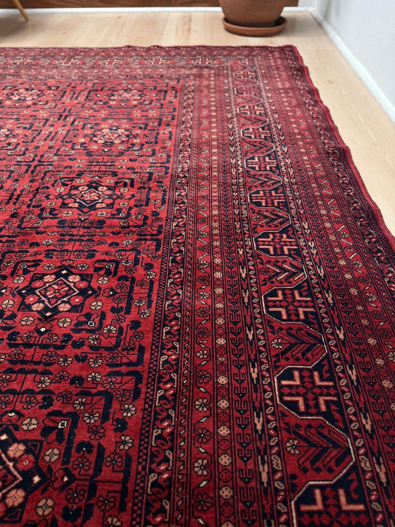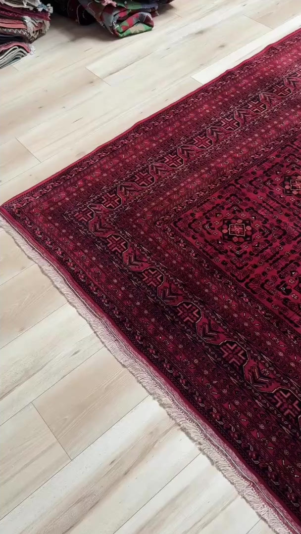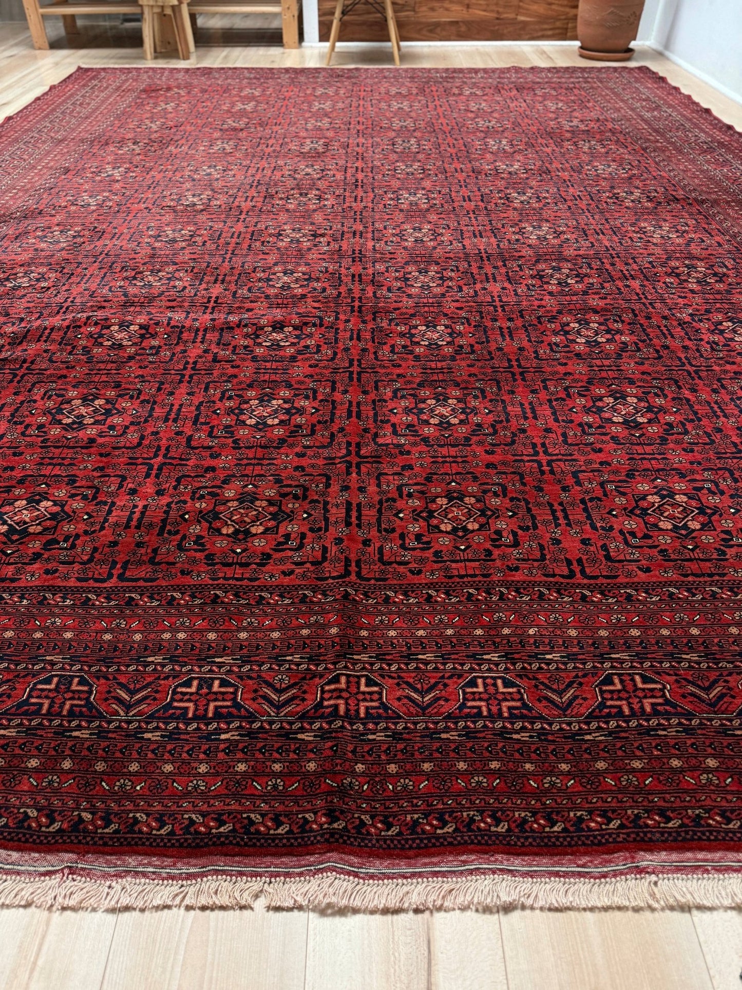 Garnet Red Bilcik Vintage Turkmen Rug • Handmade Wool Carpet • 10x14 Traditional Rug for Living Room, Bedroom, Dining & Office