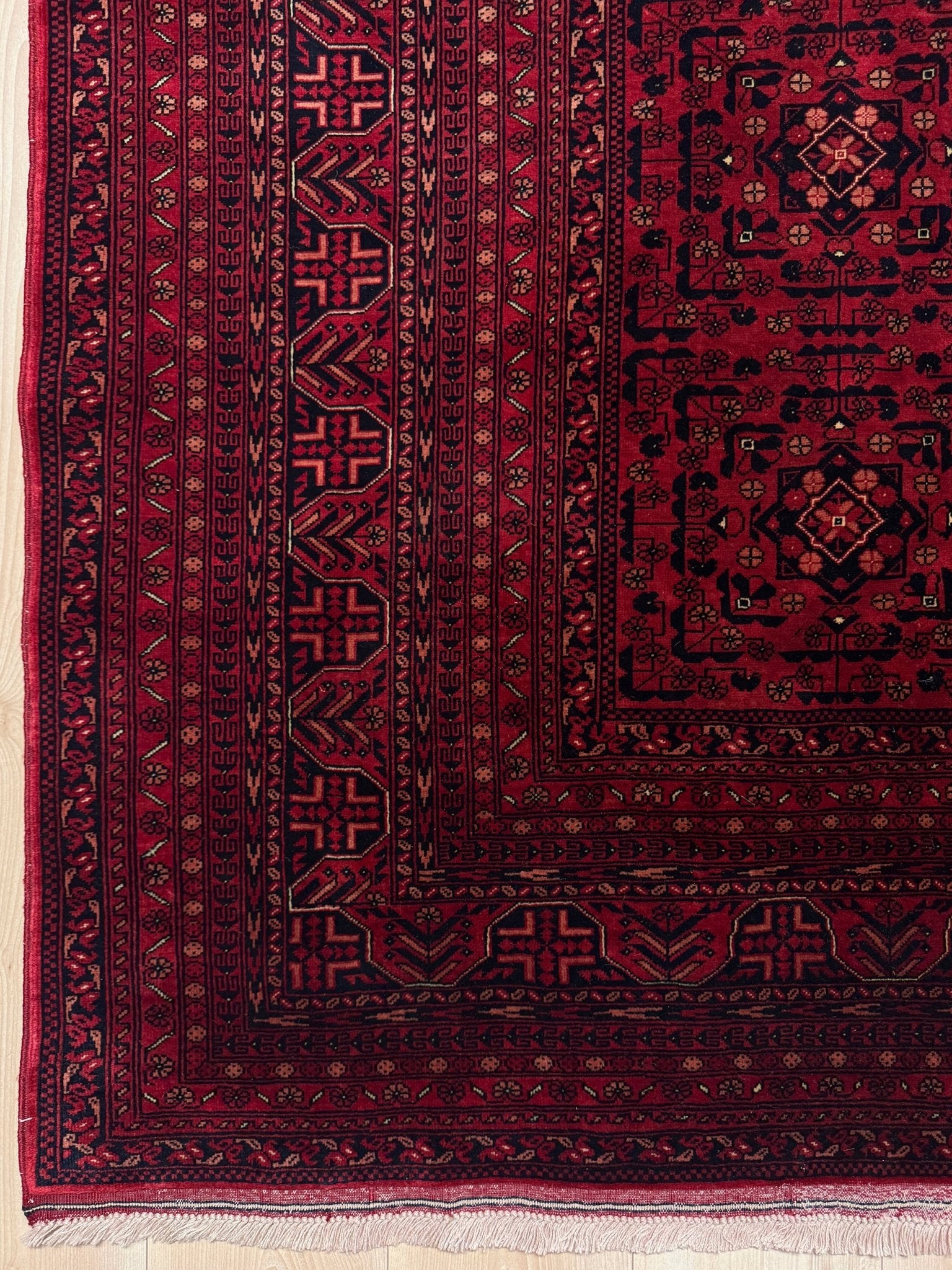 Material: Hand knotted, hand spun Ghazni wool pile on a cotton foundation.
