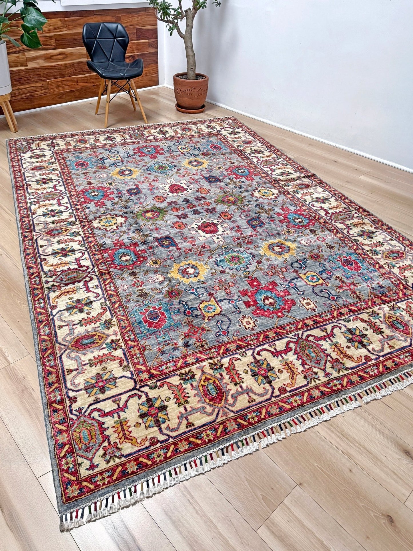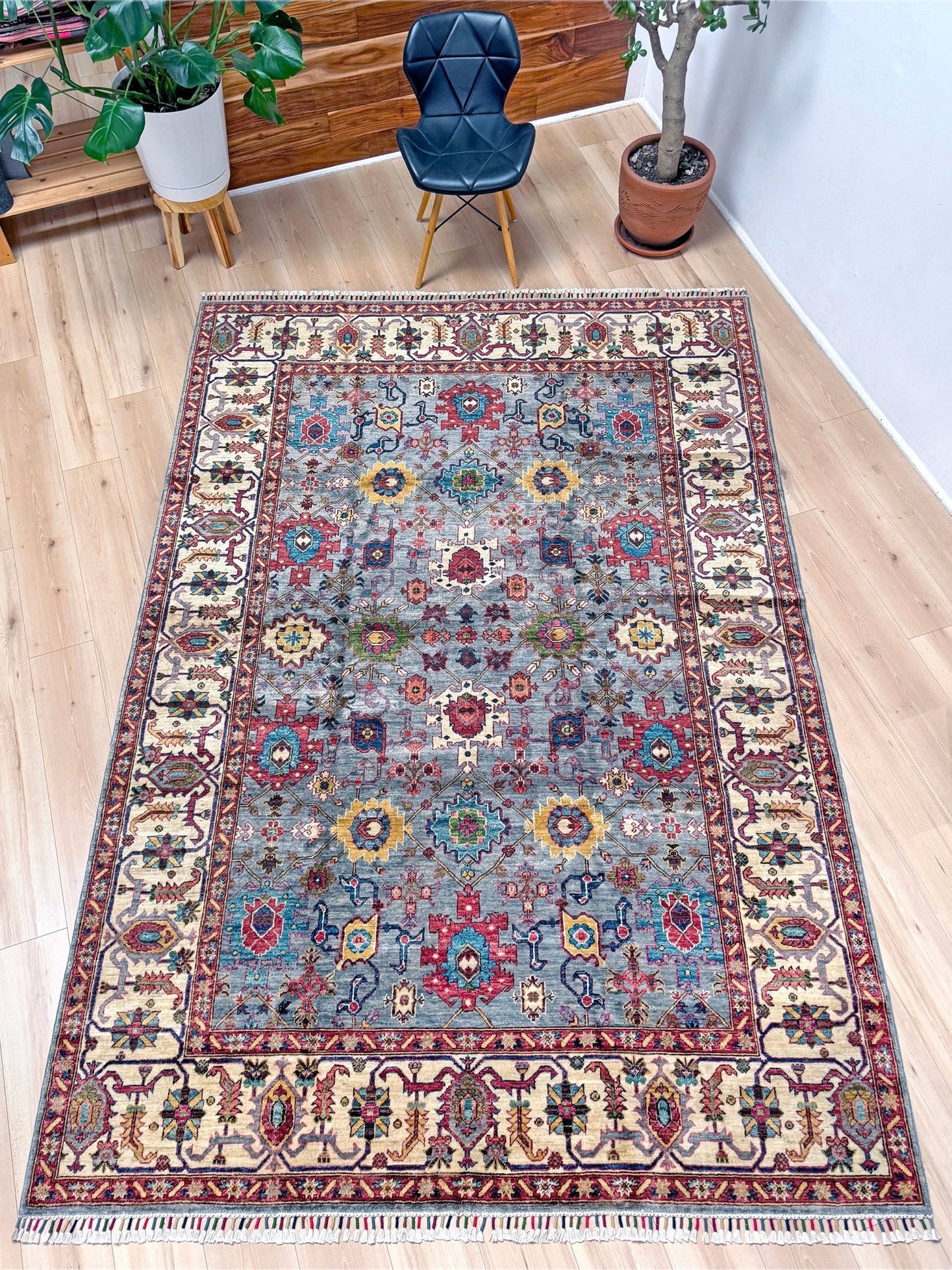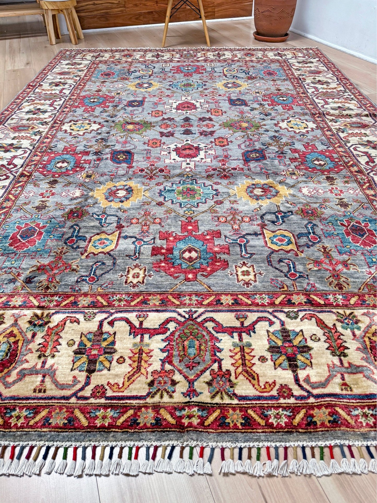 *Color of a handmade rug is sensitive to the light it gets. Therefore, the rug may appear slightly differently depending on the lighting of your place.