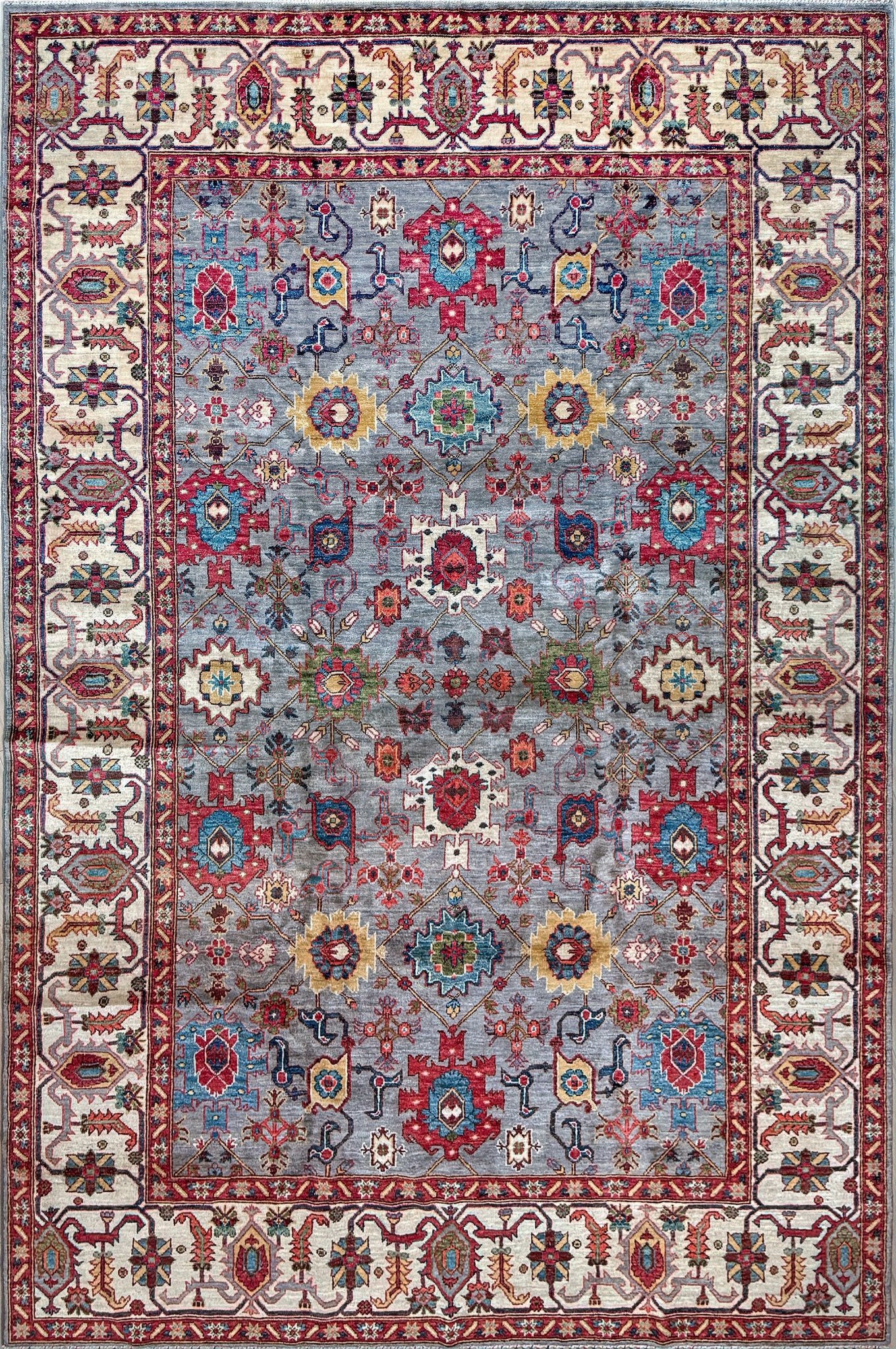 Material: Hand knotted, hand spun Ghazni wool pile on a cotton foundation.